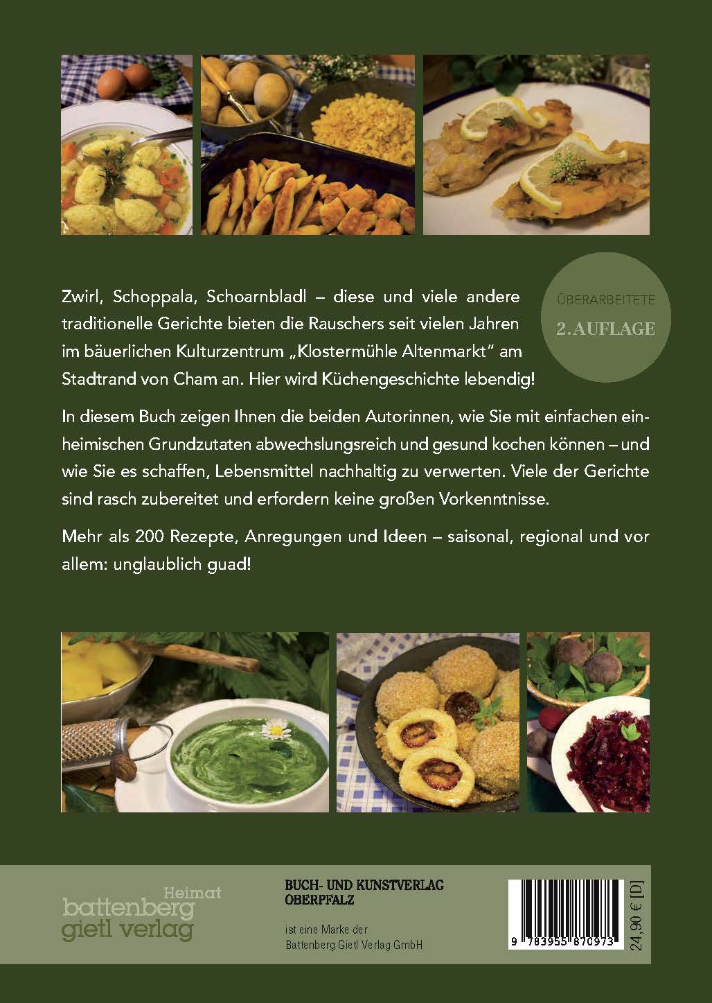 Zwirl, Schoppala, Schoarnbladl - diese und viele andere traditionelle Gerichte bieten die Rauschers seit vielen Jahren im bäuerlichen Kulturzentrum "Klostermühle Altenmarkt" am Stadtrand von Cham an. Hier wird Küchengeschichte lebendig! In diesem Buch zeigen Ihnen die beiden Autorinnen, wie Sie mit einfachen einheimischen Grundzutaten abwechslungsreich und gesund kochen können - und wie Sie es schaffen, Lebensmittel nachhaltig zu verwerten. Viele der Gerichte sind rasch zubereitet und erfordern keine großen Vorkenntnisse. Mehr als 200 Rezepte, Anregungen und Ideen - saisonal, regional und vor allem: unglaublich guad!