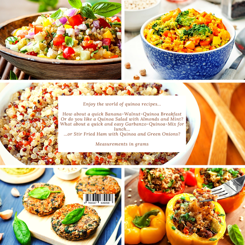 Enjoy the world of quinoa recipes...How about a quick Banana-Walnut-Quinoa BreakfastOr do you like a Quinoa Salad with Almonds and Mint?What about a quick and easy Garbanzo-Quinoa-Mix for lunch......or Stir Fried Ham with Quinoa and Green Onions?Measurements in grams