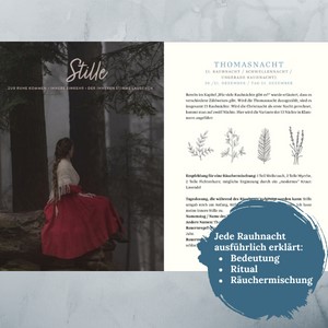Die dreizehn Rauhnächte zwischen dem 21. Dezember und dem 6. Januar umgibt seit jeher ein besonderer Zauber: Sie werden von uralten, mystischen Bräuchen und reinigenden Räucherritualen begleitet. Sie helfen Altes abzuschließen und einen Blick auf Zukünftiges zu werfen. Dieses liebevoll gestaltete Workbook zeigt, wie man das alte Wissen auch in der Gegenwart nutzen und Kraft aus dieser sagenumwobenen Zeit schöpfen kann. Nadine Stegelmeier teilt ihr Wissen rund ums Räuchern, gibt Erklärungen, Empfehlungen und führt durch die Rituale. Mit Fragen regt das Buch an, über sich selbst nachzudenken, Rückschau zu halten, Gedanken, Träume und Wünsche für die Zukunft festzuhalten und aufzuschreiben. Die Autorin führt mit ihrem großen Erfahrungsschatz einfühlsam durch die Bräuche und Rituale der Rauhnächte und lässt sie für die Leser:innen in diesem Tagebuch zu einer besonderen Zeit für sich selbst werden.
