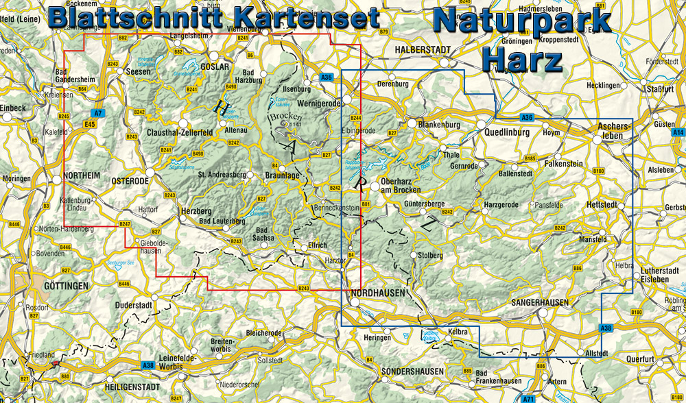 Der Harz, Deutschlands nördlichstes Mittelgebirge, weist eine landschaftliche Vielfalt auf, wie sie anderswo kaum zu finden ist. Hochflächen werden durch tief eingeschnittene Täler geteilt und wechseln sich mit friedlichen Bergwiesen ab. Laub-, Misch- und Nadelwälder, wilde Flussläufe und eine unendliche Anzahl von Rad- und Wanderwegen lassen einzigartige Naturerlebnisse möglich werden. In Zusammenarbeit mit dem Harzklub und dem Regionalverband Harz wurde ein 2-teiliges, wetterfestes Kartenset bestehend aus der Rad- und Wanderkarte Westlicher Naturpark Harz und Östlicher Naturpark Harz erstellt. Erstmals präsentiert unser Verlag den gesamten Harz von Bad Gandersheim bis nach Aschersleben und Hettstedt auf 4 Kartenseiten.Die wetterfesten Karten im Maßstab 1:50 000 sind ideal zur Planung einer Wandertour und zum Biken im Harz. Die Stempelstellen der Harzer Wandernadeln zeigen die schönsten Wanderziele im Harz und die Darstellung der Landmarken und Geopunkte des Geoparkey Harz ermöglicht es diese interessanten Punkte des Harzes zu erkunden.Eine Geländeschummerung visualisiert das Mittelgebirge und ein UTM-Gitter ermöglicht die Nutzung eines GPS-Gerätes.