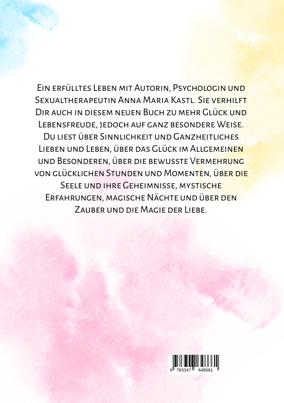 Anna Maria schreibt, hält Vorträge, Lesungen und Seminare in Sachen Leben und Lieben. Inspirierend, lehrreich und motivierend, aber dennoch mit dem nötigen Humor und ganz viel Herzenswärme. Ihre Beiträge berühren Herz und Seele gleichermaßen. Psychologische Beratungen, Sexualtherapie und Energiearbeit gehören zu ihren weiteren Angeboten. Lernen Sie mit Anna Maria eine Frau kennen, die ausschließlich die Liebe lebt und Ihnen mit über 40 Jahren spiritueller Lebenserfahrung und ihren Gaben sehr viel an Rat, Hilfe und Lebensweisheit zu vermitteln hat.