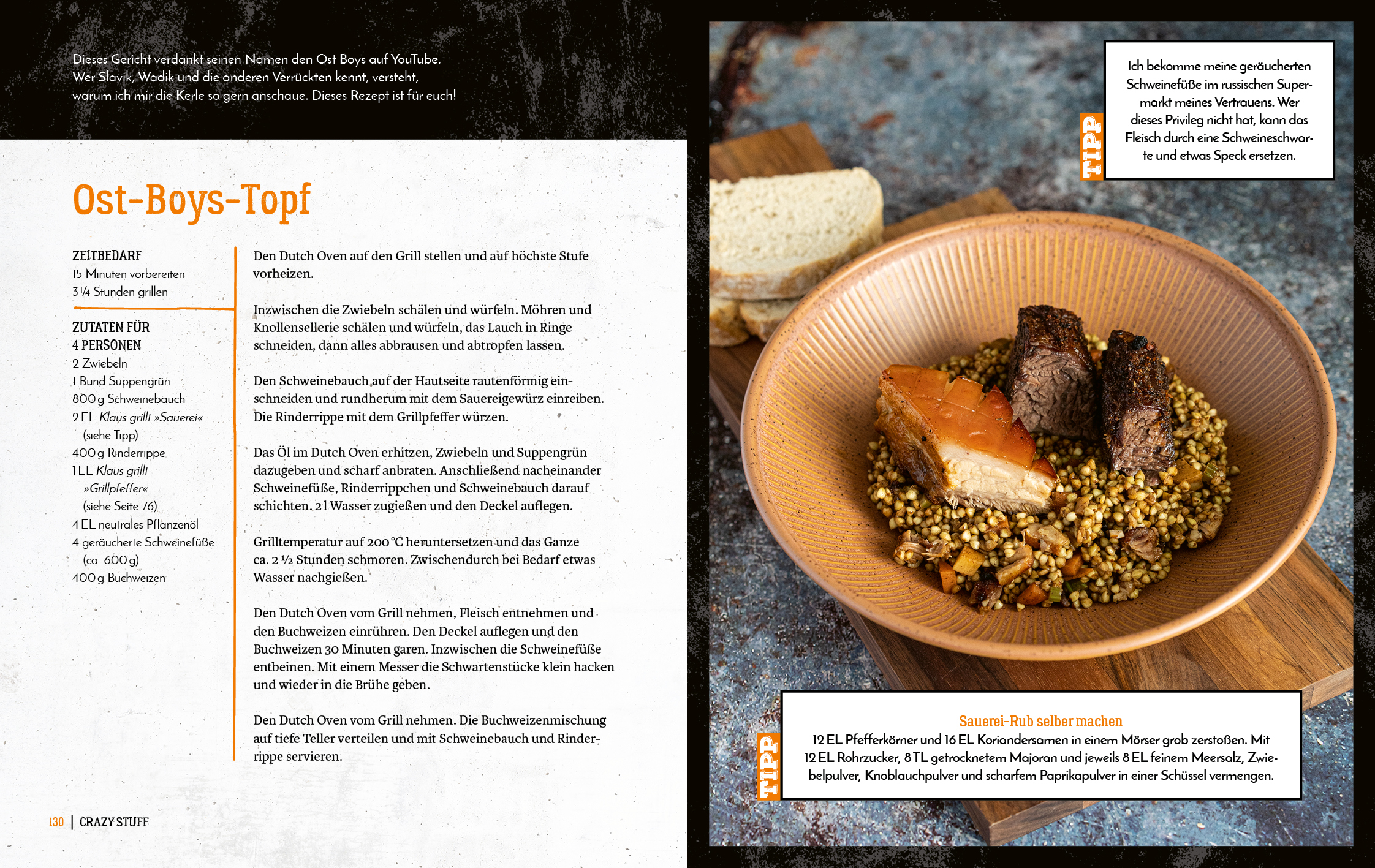 Klaus Glaetzner von Deutschlands größtem Grill-YouTube-Kanal Klaus grillt begeistert in seinem zweiten Buch mit tollen Rezepten aus dem Dutch Oven natürlich getreu seinem Motto: einfach, schnell und lecker. Die Fleischgerichte aus dem Feuertopf sind deftig, abwechslungsreich und extrem schmackhaft. Wie wäre es mit BBQ Chicken Drumsticks, Pulled Beef mit Malzbier oder Grillwurst mit Käse-Zwiebel-Sauce? Dank der Tipps und Tricks von Klaus beeindruckst du Familie und Freunde wirklich bei jedem Grillabend!