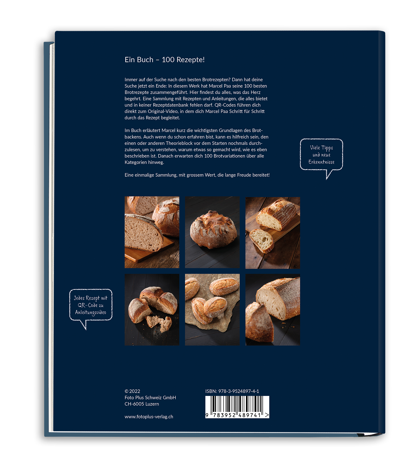 Immer auf der Suche nach den besten Brotrezepten? Dann hat deine Suche jetzt ein Ende: In diesem Werk hat Marcel Paa seine 100 besten Brotrezepte zusammengeführt. Hier findest du alles, was das Herz begehrt. Eine Sammlung mit Rezepten und Anleitungen, die alles bietet und in keiner Rezeptdatenbank fehlen darf. QR-Codes führen dich direkt zum Original-Video, in dem dich Marcel Paa Schritt für Schritt durch das Rezept begleitet. Im Buch erläutert Marcel kurz die wichtigsten Grundlagen des Brotbackens. Auch wenn du schon erfahren bist, kann es hilfreich sein, den einen oder anderen Theorieblock vor dem Starten nochmals durchzulesen, um zu verstehen, warum etwas so gemacht wird, wie es eben beschrieben ist. Danach erwarten dich 100 Brotvariationen über alle Kategorien hinweg. Eine einmalige Sammlung, mit grossem Wert, die lange Freude bereitet!