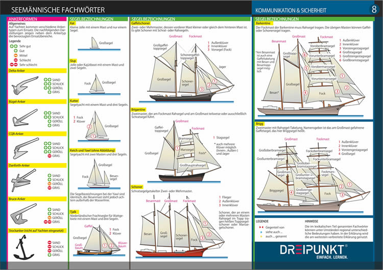 | Schlagworte | an Bord • Ausdruck • Ausdrücke • Beginner • Binnen • Dreipunkt • Dreipunktverlag • Dreipunkt-Verlag • Fachwort • Fachworte • Fachwörter • Info-Tafel • Info-Tafel-Set • Jolle • Knoten • Knoten lernen • Kommandos • Kommandos lernen • Kommunikation • Schiff • Schifffahrt • Seefahrt • Seemann • Segelanfänger • Segelboot • Segeljolle • Segeln • segeln lernen • Sicherheit • Sprache • Starter • Tafel-Set |