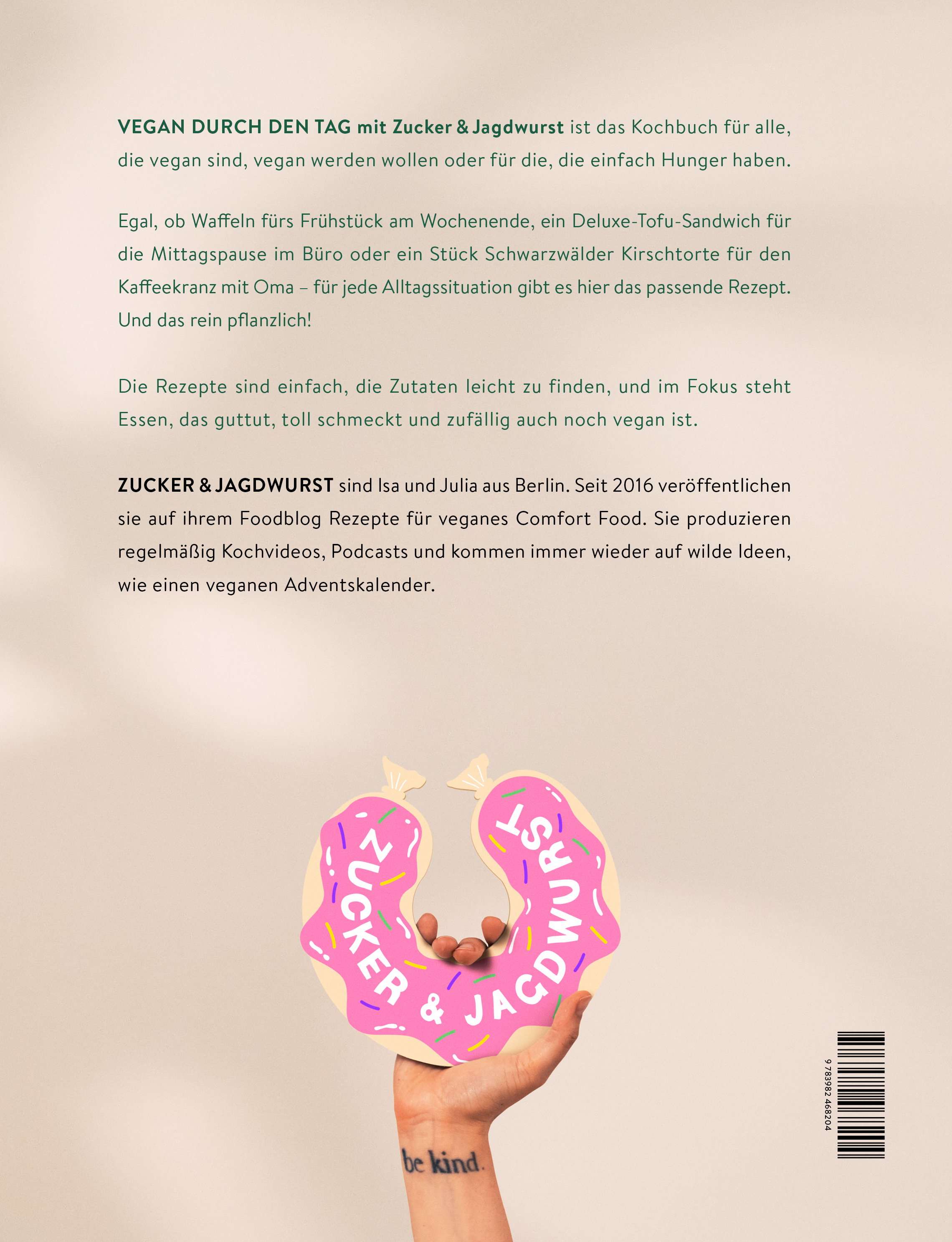 VEGAN DURCH DEN TAG mit Zucker & Jagdwurst ist das Kochbuch für alle, die vegan sind, vegan werden wollen oder für die, die einfach Hunger haben. Egal, ob Waffeln fürs Frühstück am Wochenende, ein Deluxe-Tofu-Sandwich für die Mittagspause im Büro oder ein Stück Schwarzwälder Kirschtorte für den Kaffeekranz mit Oma – für jede Alltagssituation gibt es hier das passende Rezept. Und das rein pflanzlich!