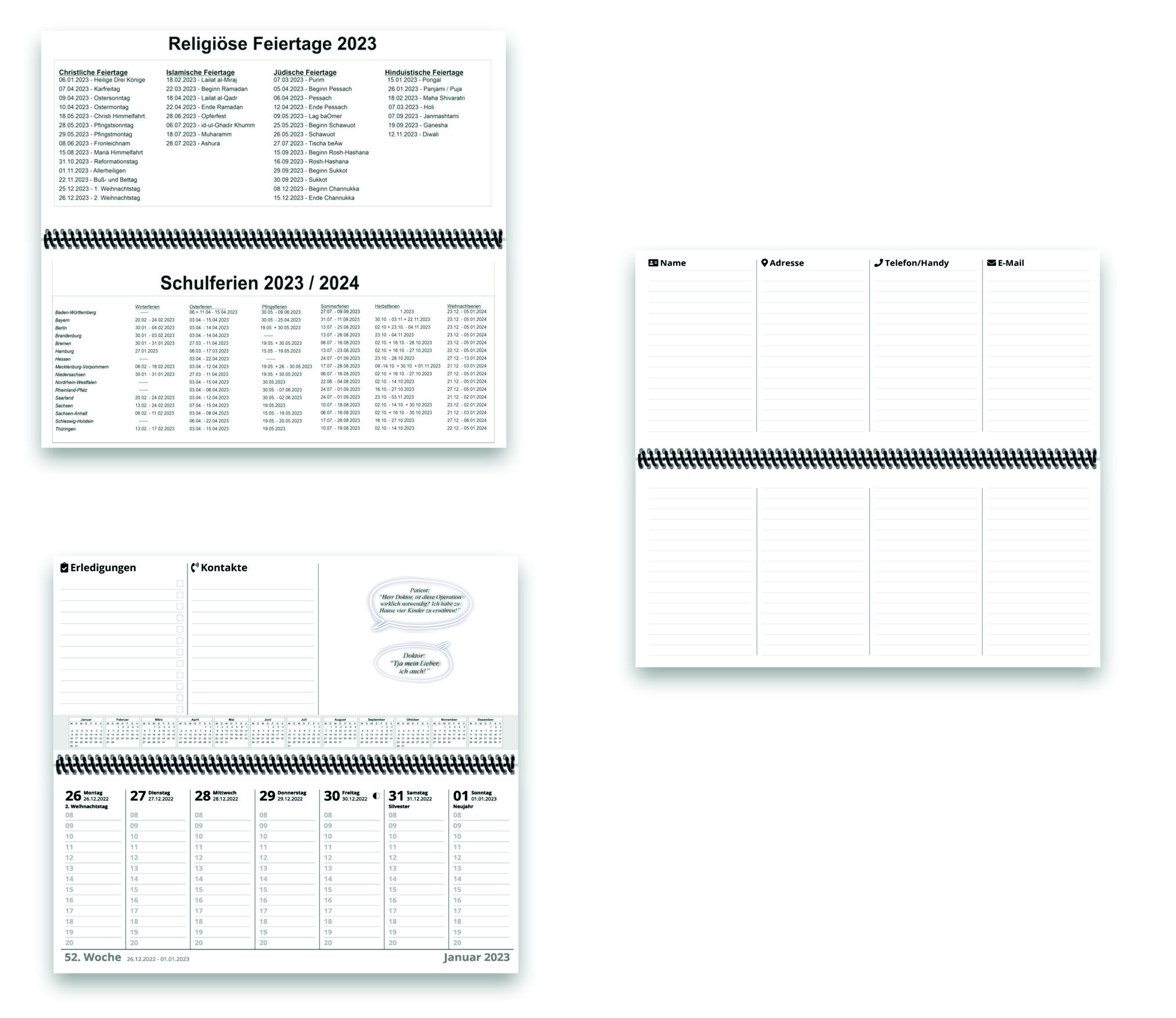 - extra langes Adress-, Telefon- und E-Mail-Verzeichnis ( 7 Seiten)