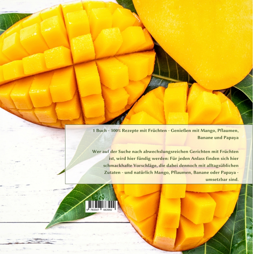 1 Buch - 100% Rezepte mit Früchten - Genießen mit Mango, Pflaumen, Banane und PapayaWer auf der Suche nach abwechslungsreichen Gerichten mit Früchten ist, wird hier fündig werden: Für jeden Anlass finden sich hier schmackhafte Vorschläge, die dabei dennoch mit alltagsüblichen Zutaten - und natürlich Mango, Pflaumen, Banane oder Papaya - umsetzbar sind.Eine kleine Auswahl der enthaltenen Rezepte:Hausgemachter Pflaumen-CrispGebratene Bananenstücke mit ZimtMango-Tilapia-Mix mit Chili und ZwiebelnGegrillter Thunfisch mit Papaya und Macadamia-NüssenHausgemachtes PflaumenbrotGuacamole mit Mango...Jetzt zugreifen und den Speiseplan mit leckeren Früchten aufwerten!