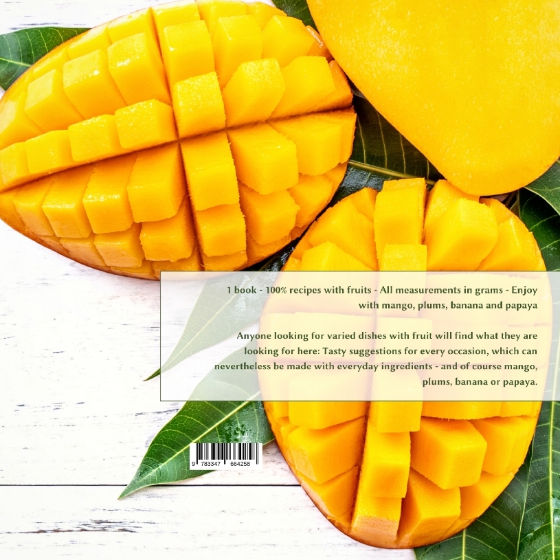 1 book - 100% recipes with fruits - All measurements in grams - Enjoy with mango, plums, banana and papayaAnyone looking for varied dishes with fruit will find what they are looking for here: Tasty suggestions for every occasion, which can nevertheless be made with everyday ingredients - and of course mango, plums, banana or papaya.A small selection of the recipes included:Homemade plum crispFried banana pieces with cinnamonMango and tilapia mix with chilli and onionsGrilled tuna with papaya and macadamia nutsHomemade plum breadGuacamole with mango...Start now and add some tasty fruits to your menu!