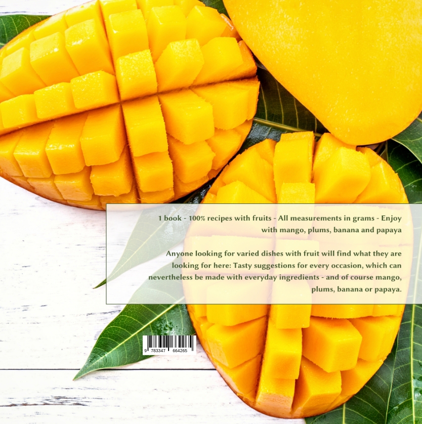 1 book - 100% recipes with fruits - All measurements in grams - Enjoy with mango, plums, banana and papayaAnyone looking for varied dishes with fruit will find what they are looking for here: Tasty suggestions for every occasion, which can nevertheless be made with everyday ingredients - and of course mango, plums, banana or papaya.A small selection of the recipes included:Homemade plum crispFried banana pieces with cinnamonMango and tilapia mix with chilli and onionsGrilled tuna with papaya and macadamia nutsHomemade plum breadGuacamole with mango...Start now and add some tasty fruits to your menu!