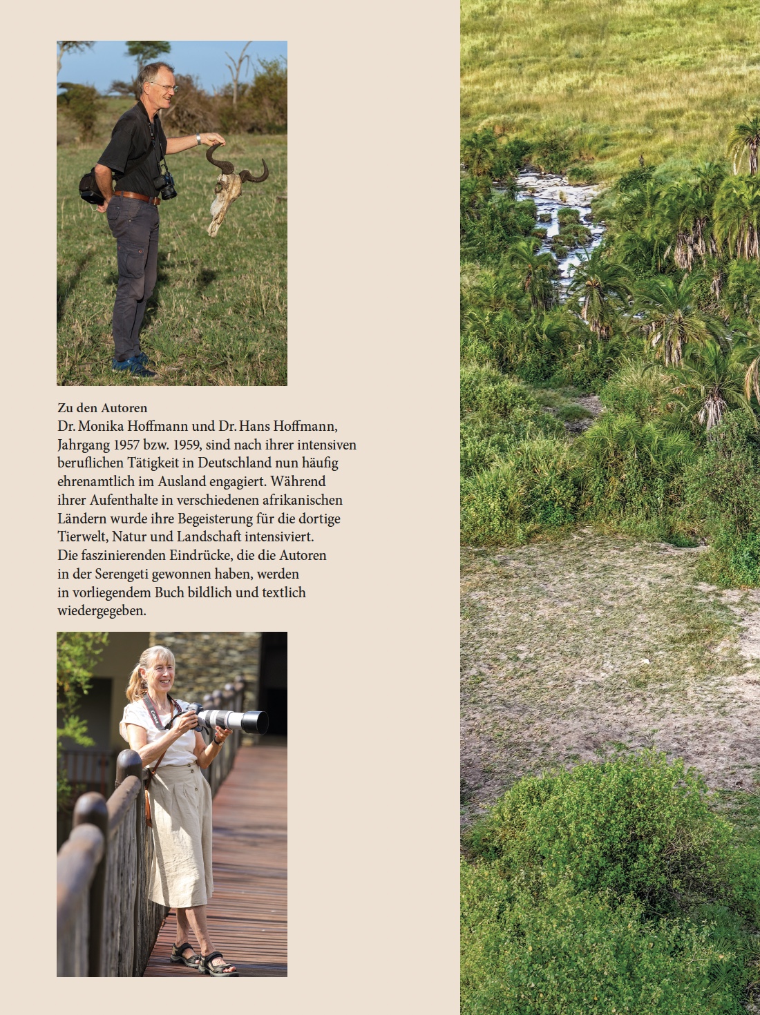 Dr. Monika Hoffmann und Dr. Hans Hoffmann, Jahrgang 1957 bzw. 1959, sind nach ihrer intensiven beruflichen Tätigkeit in Deutschland nun häufig ehrenamtlich im Ausland engagiert. Während ihrer Aufenthalte in verschiedenen afrikanischen Ländern wurde ihre Begeisterung für die dortige Tierwelt, Natur und Landschaft intensiviert.Die faszinierenden Eindrücke, die die Autoren in der Serengeti gewonnen haben, werden in vorliegendem Buch bildlich und textlich wiedergegeben.