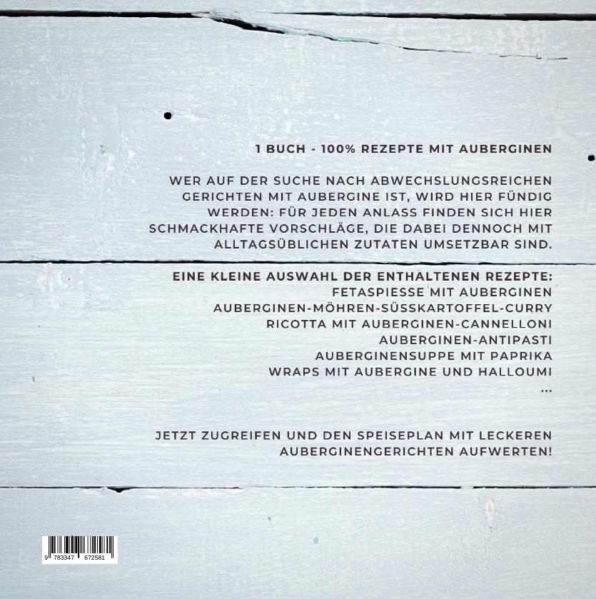 1 Buch - 100% Rezepte mit AuberginenWer auf der Suche nach abwechslungsreichen Gerichten mit Aubergine ist, wird hier fündig werden: Für jeden Anlass finden sich hier schmackhafte Vorschläge, die dabei dennoch mit alltagsüblichen Zutaten umsetzbar sind.Eine kleine Auswahl der enthaltenen Rezepte:Fetaspieße mit AuberginenAuberginen-Möhren-Süßkartoffel-CurryRicotta mit Auberginen-CannelloniAuberginen-AntipastiAuberginensuppe mit PaprikaWraps mit Aubergine und Halloumi...Jetzt zugreifen und den Speiseplan mit leckeren Auberginengerichten aufwerten!