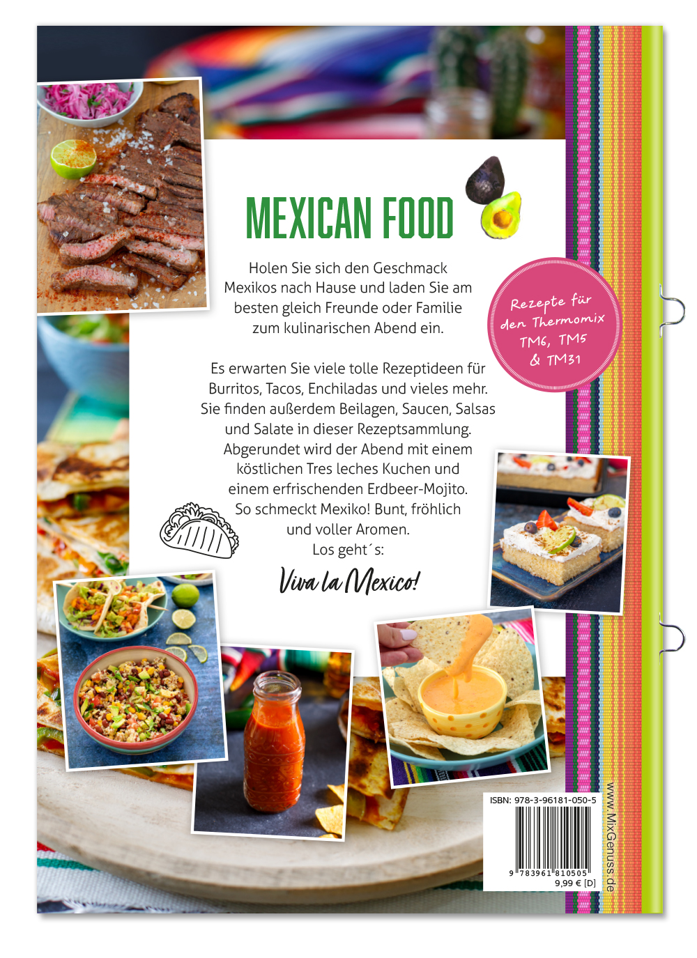 So schmeckt Mexiko - bunt, fröhlich und voller Aromen.Mexikanische Rezepte mit dem Thermomix für eine perfekte Fiesta! Holen Sie sich den Geschmack Mexikos nach Hause und laden Sie am besten gleichFreunde oder Familie zum kulinarischen Abend ein.Es erwarten Sie viele tolle Rezeptideen für Burritos, Tacos, Enchiladas und vieles mehr.Sie finden außerdem Beilagen, Saucen, Salsas und Salate in dieser Rezeptsammlung.Abgerundet wird der Abend mit einem köstlichen Tres leches Kuchen und einemerfrischenden Erdbeer-Mojito. Los geht´s: Viva la Mexico!Im Überblick:- rund 30 Rezepte mit und ohne Thermomix (geeignet für den Thermomix TM6, TM5 sowie für den TM31)- mit vielen Rezept-Tipps und Kombinationsmöglichkeiten für mehr Variationen - Rezepte mit Fisch, Fleisch und vegetarisch- Alle Rezepte mit Bild und Nährwertangaben