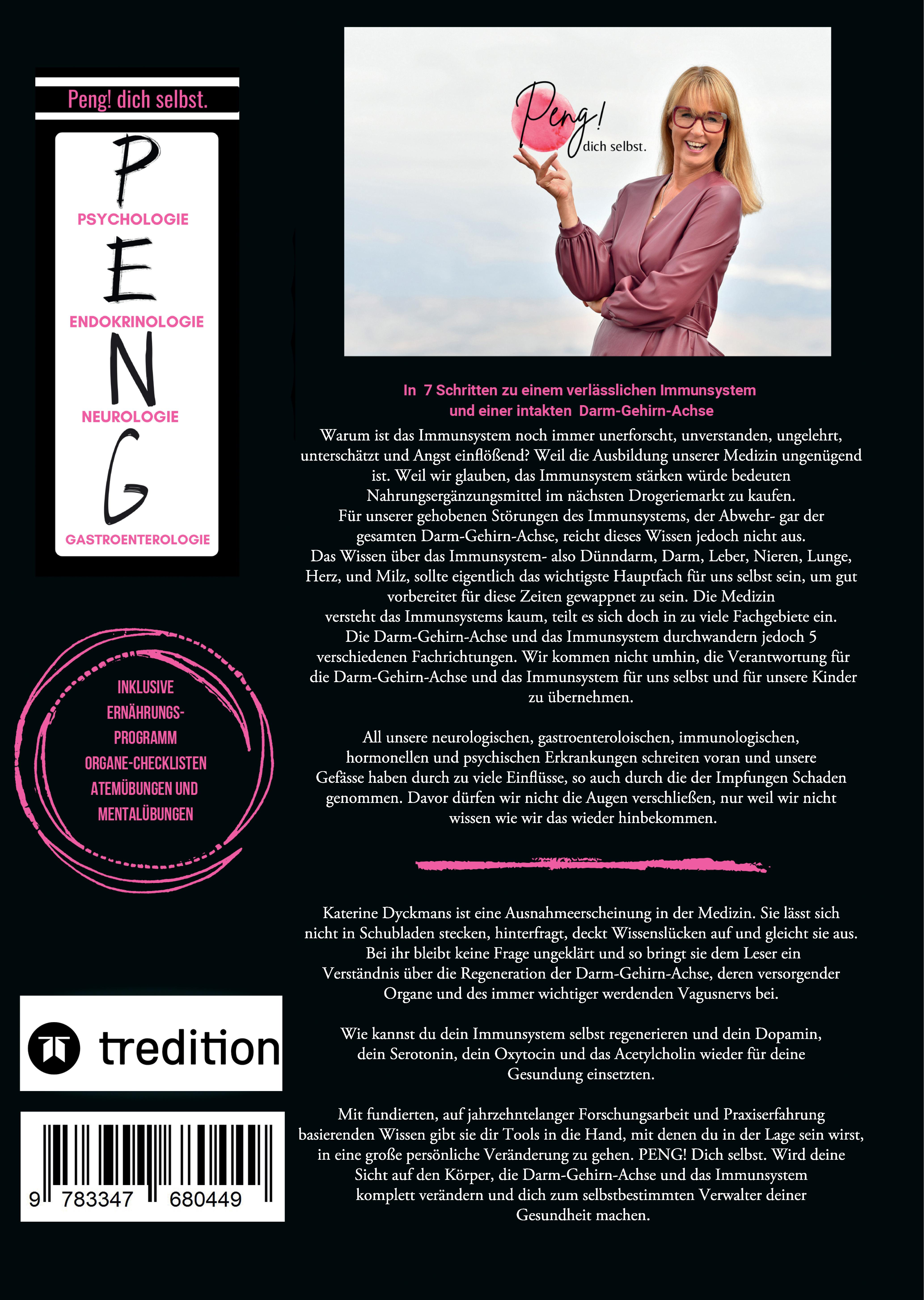 Katerine Dyckmans wurde 1965 geboren und ist Medizinerin und Forscherin auf dem Gebiet der Darm- Gehirn-Achse und des Immunsystems. Sie gab sich nicht mit einem Studium der Medizin zufrieden, in dem das Immunsystem nur als freiwilliges Wahlfach vorkam. Sie machte sich auf eine lange medizinische Forschungsreise durch viel Länder wie Amerika, Norwegen, Schweden, Thailand, Borneo und studierte 6 Jahre chinesische Medizin in China um dann eine Behandlungsmethode zu entwickeln, mit der die Darm-Gehirn-Achse und dem Immunsystem komplett regeneriert werden können. Durch die Verbindung von Forschungsgebieten wie der Gastroenterologie, der Endokrinologie, der Psychologie und der Neurologie - verknüpft mit dem Wissen und der Erfahrung andere Länder und Kulturen, kann sie Menschen selbst aus den aussichtslosesten Prognosen zurück in die Regeneration führen. Seit über 10 Jahren arbeitet sie im Rahmen ihrer 21 Tage Challenges überall auf der Welt. Sie begleitet Menschen in enger Zusammenarbeit und spürt so alle Probleme auf und leitet Zellveränderungen ein, die in normalen Praxisterminen nicht möglich wären. Eine aussergewöhnliche Medizinerin und eine aussergewöhnliche Methode zu deren Wurzeln die Offenheit und das Aufgeben jedweder konventionell- medizinischen Schubladen, aber auch der engen alternativ-medizinischen Schubladen gehört.