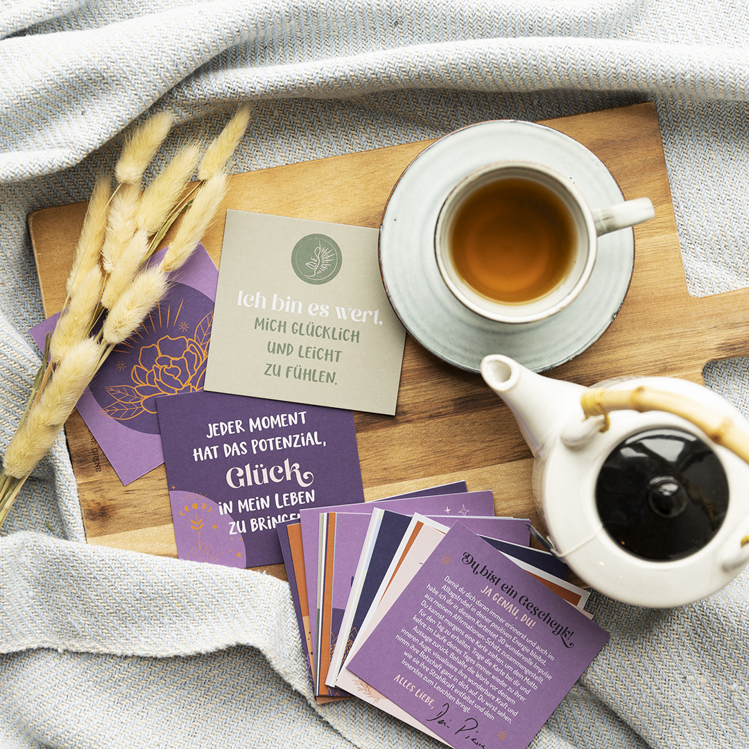 Karten-Box mit Affirmationen für mehr Selbstliebe und positives Denken