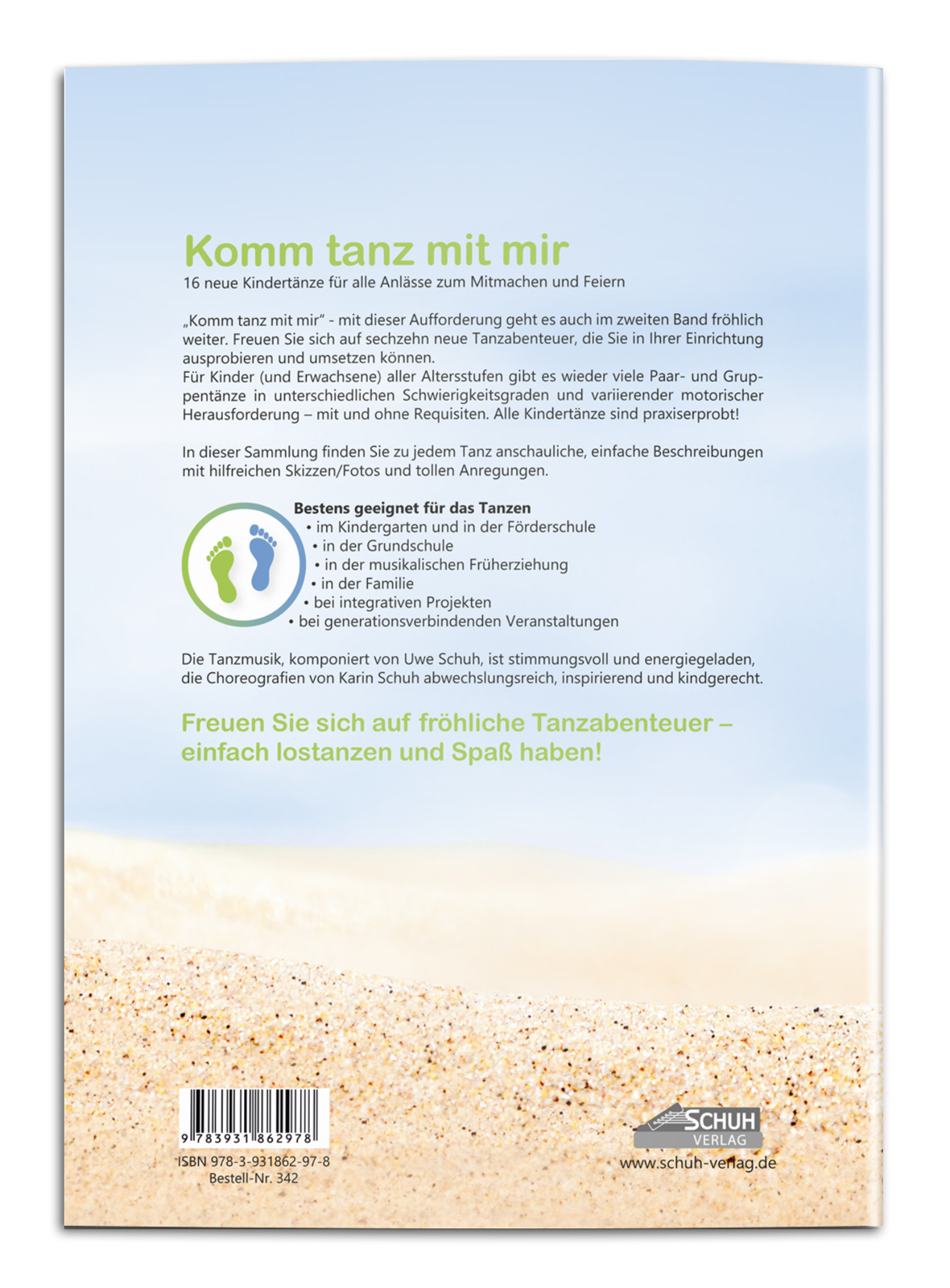 „Komm tanz mit mir“ - mit dieser Aufforderung geht es auch im zweiten Band fröhlich weiter. Freuen Sie sich auf sechzehn neue Tanzabenteuer, die Sie in Ihrer Einrichtung ausprobieren und umsetzen können. Für Kinder (und Erwachsene) aller Altersstufen gibt es wieder viele Paar- und Gruppentänze in unterschiedlichen Schwierigkeitsgraden und variierender motorischer Herausforderung – mit und ohne Requisiten. Die Tanzmusik, komponiert von Uwe Schuh, ist stimmungsvoll und energiegeladen, die Choreografien von Karin Schuh abwechslungsreich, inspirierend und kindgerecht. Alle Kindertänze sind praxiserprobt!