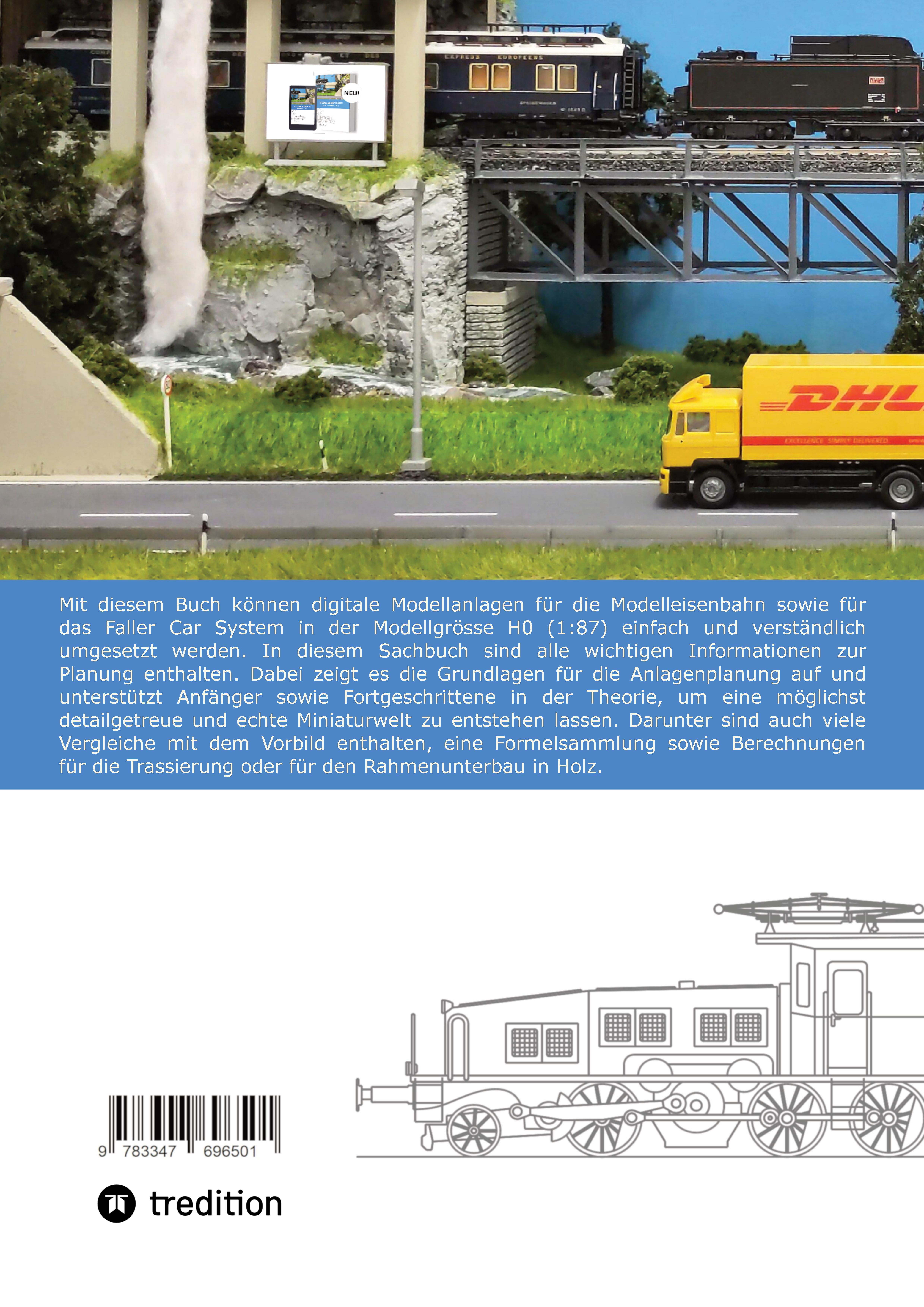 Mit diesem Buch können digitale Modellanlagen für die Modelleisenbahn sowie für das Faller Car System in der Modellgrösse H0 (1:87) einfach und verständlich umgesetzt werden. In diesem Sachbuch sind alle wichtigen Informationen zur Planung enthalten. Dabei zeigt es die Grundlagen für die Anlagenplanung auf und unterstützt Anfänger sowie Fortgeschrittene in der Theorie, um eine möglichst detailgetreue und echte Miniaturwelt zu entstehen lassen. Darunter sind auch viele Vergleiche mit dem Vorbild enthalten, eine Formelsammlung sowie Berechnungen für die Trassierung oder für den Rahmenunterbau in Holz.Das Sachbuch dient zur Unterstützung der Planung und der Realisierung von Modelleisenbahnen. Da auch in der Welt der Modelleisenbahn das digitale Zeitalter erreicht hat, dürfte die Therorie und das Wissen darüber nicht fehlen! Die Digitaltechnik erschwert die Planung von Modellanlagen. Dafür ist die Steuerung ganzer Modellanlagen einfacher und ist die Anlage gelungen, hält der Spass auch an.