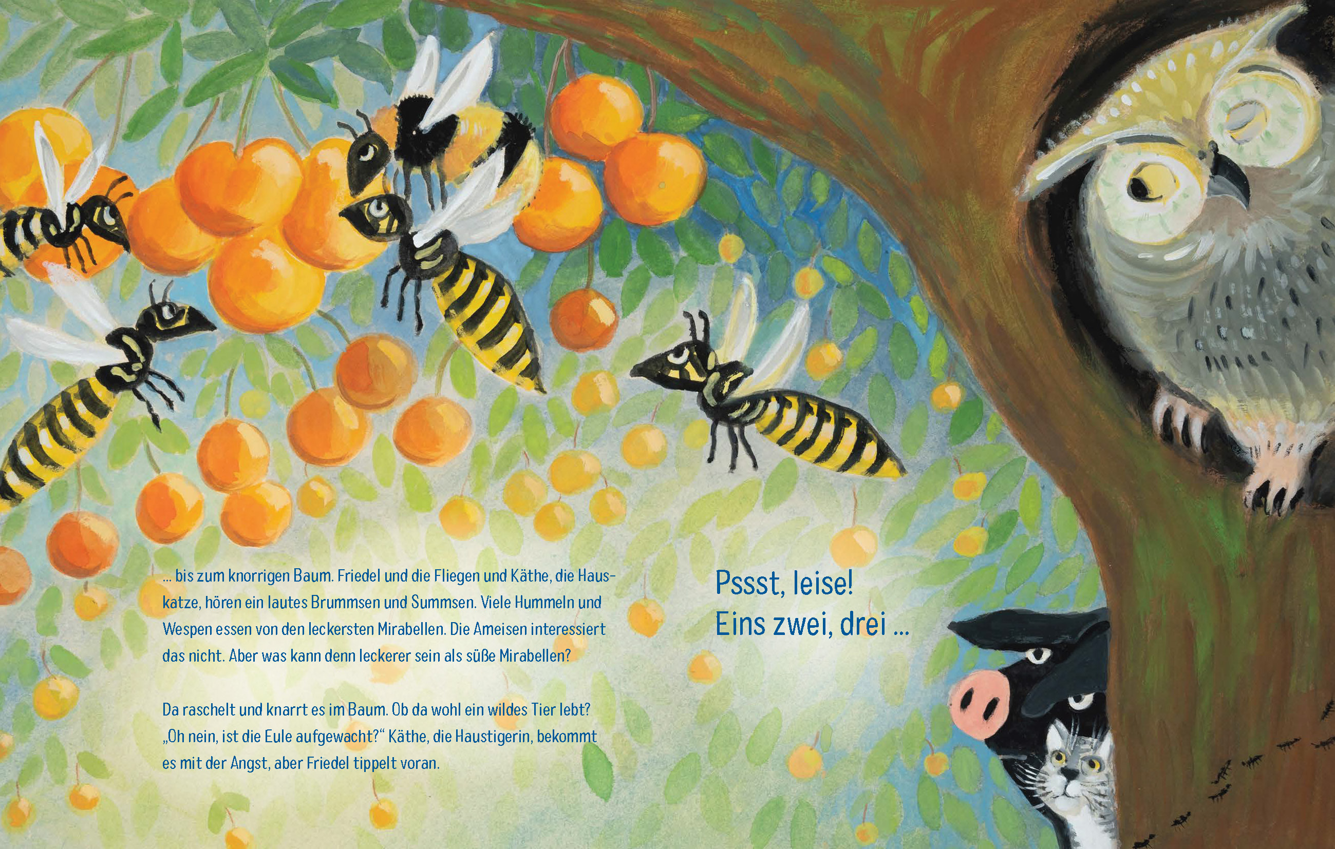 Eins, zwei, drei ... Sauerei! Hundertelf Ameisen krabbeln über Friedels Dickbauch. Wohin wollen die bloß? Friedel, das Landschweinchen, und Käthe, die Hauskatze, folgen der kitzligen Ameisenstraße - mitten hinein ins nächste Abenteuer. Sie begegnen vielen Tieren und anderen Früchtchen. Aber werden sie den geheimnisvollen Schatz der Wiese finden?Eine saumäßig leckere Reise mit Streuobst und einem süßen Finderlohn!