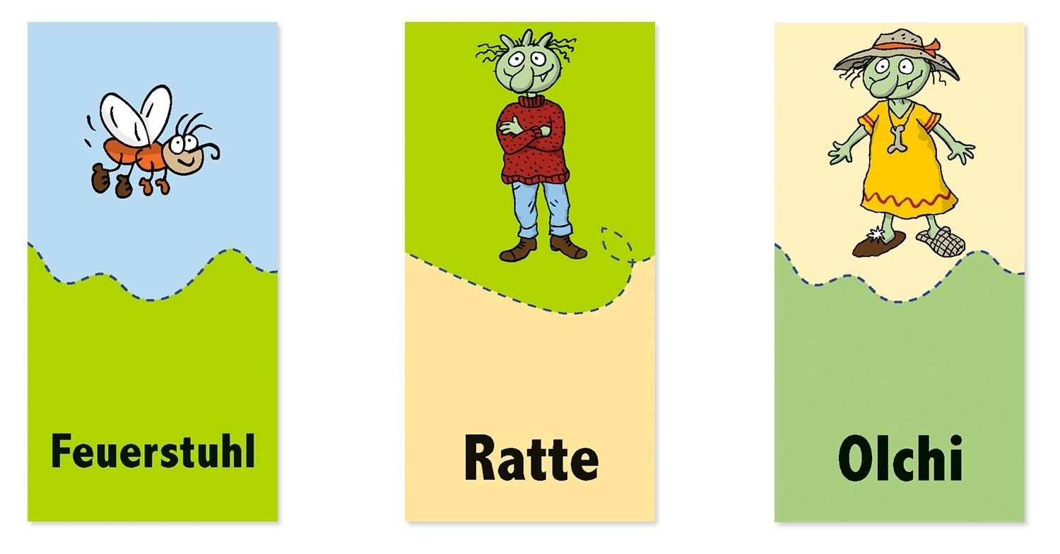 Zur stinkigen Fledermaus, was ist hier passiert? Allerhand Begriffe und Bilder aus der Olchi Welt müssen geschickt aneinander gelegt werden - wer als erstes keine Dominosteinchen mehr hat, gewinnt. Olchi an Olchi und Schlamm an Schlamm, das klassische Domino-Spiel mit 36 Karten zum Lesenlernen mit den Olchis.