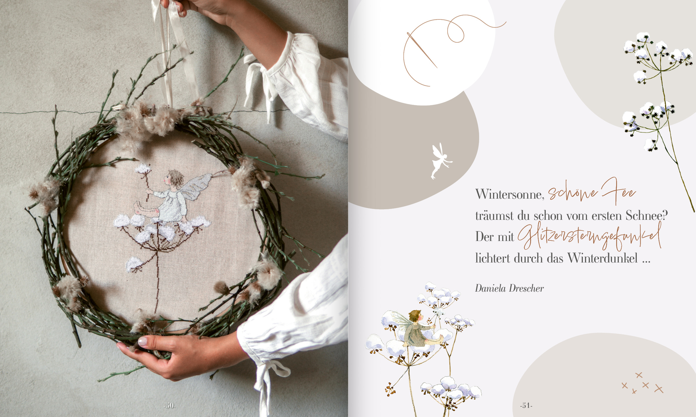 Mit feinem Gespür erfindet und zeichnet Daniela Drescher zarte Figuren, Flora und Fauna. Ihre fantasiereichen Illustrationen sind Vorlage für diese Kreuzstichmotive, mit denen sie uns in verwunschene Welten entführt und damit unsere Herzen berührt.