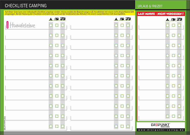 | Schlagworte | Abenteuer • Campen • Camping • Checkliste • Dreipunkt • Dreipunkt-Verlag • Entspannung • Ferien • Freizeit • Holiday • Info-Tafel • Reise • Rucksack • Urlaub • Van • Van-Life • Vorbereiten • Vorbereitung • Vorsorge • Wohnmobil • Wohnwagen • Zelt • Zelten |