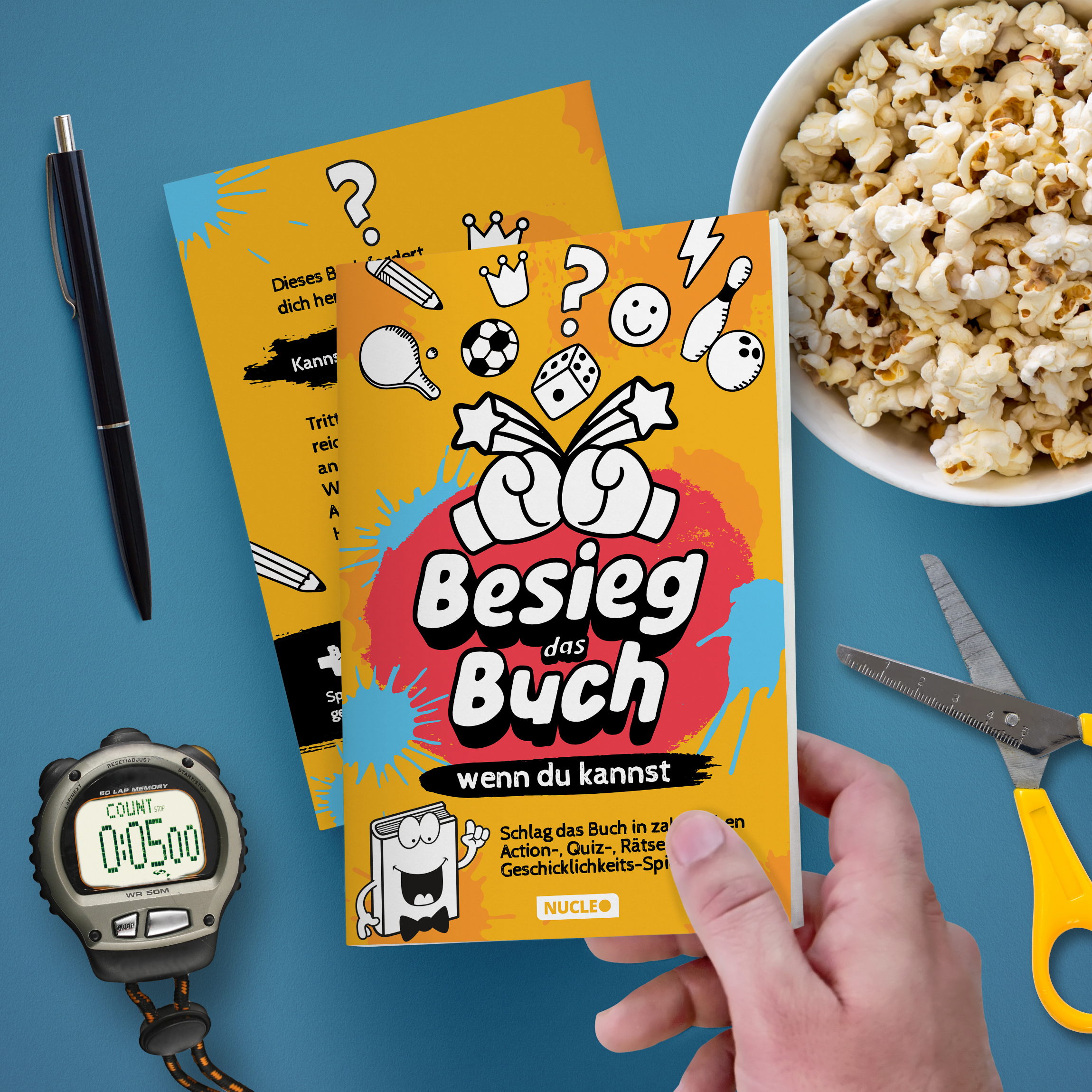 Dieses Buch wird lebendig und fordert dich in zahlreichen Spielen heraus.Du gegen das Buch - wer wird gewinnen?Stelle dich in vielen Spielen der Herausforderung und besieg das Buch. Dabei sind nicht nur logisches Denken und Schnelligkeit, sondern auch deine motorischen Fähigkeiten gefragt.Das Buch wird zum SpielBücher sind nur zum Lesen da? Von wegen! Dieses Buch wird zum Showmaster und fordert dich heraus. Mal trittst du in Action-Runden wie zum Beispiel Kegeln an, mal stellt dir das Buch knifflige Quizfragen oder fordert deine Geschicklichkeit heraus. Alle Spiele sind mit dem Buch spielbar: Mal kritzelst du hinein, mal schneidest du Vorlagen für Spielbögen aus oder nutzt das Buch als Tennisschläger.Lauf gegen die ZeitWissen, Geschick und Können helfen dir dabei, die Spiele zu gewinnen. Doch bei manchen Herausforderungen ist nicht nur das Buch, sondern auch die Zeit dein Gegner. Schaffst du es, das Zeitlimit einzuhalten und das Spiel für dich zu entscheiden?Allein oder als GruppeDu kannst allein gegen das Buch antreten oder es gemeinsam mit anderen herausfordern. Ob für eine schnelle Runde zwischendurch oder als abendfüllende Spiele-Party: Die Spiele sind schnell erklärt und abwechslungsreich. Spaß und Nervenkitzel sind vorprogrammiert.Highlights:- Tritt gegen das Buch an und besiege es!- Jede Menge Spiele fordern Wissen, Geschicklichkeit und Schnelligkeit heraus- Für eine schnelle Runde zwischendurch oder als Spielmarathon geeignet- Allein oder als Gruppe spielbar- Ob Groß oder Klein: Die Spiele eignen sich für eine Altersgruppe ab 10 Jahren.Sorge für jede Menge Spaß und besieg das Buch! Jetzt bestellen und losspielen.