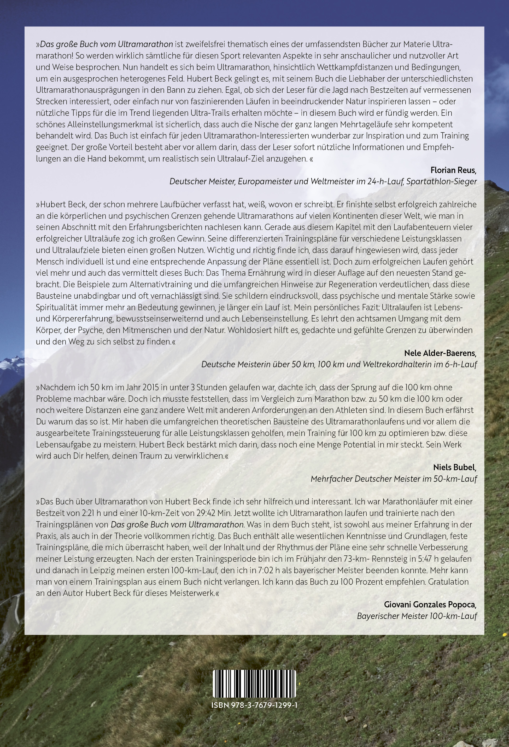 Hubert Beck, Diplom-Ingenieur und ausgebildeter DLV A-Trainer Langstreckenlauf, ist selbst die schwierigsten Ultraläufe gelaufen, darunter der Marathon des Sables, der Ultra-Trail-Mount-Blanc, der Transalpine-Run, der Jungle Marathon, der Yukon Arctic Ultra, der Leadville Trail 100 und der Spartathlon. Entstanden ist das Buch aus einer Summe von Erfahrungen und Analysen als Läufer und als Trainer. Sein Trainingssystem ist vielfach erfolgreich erprobt worden.