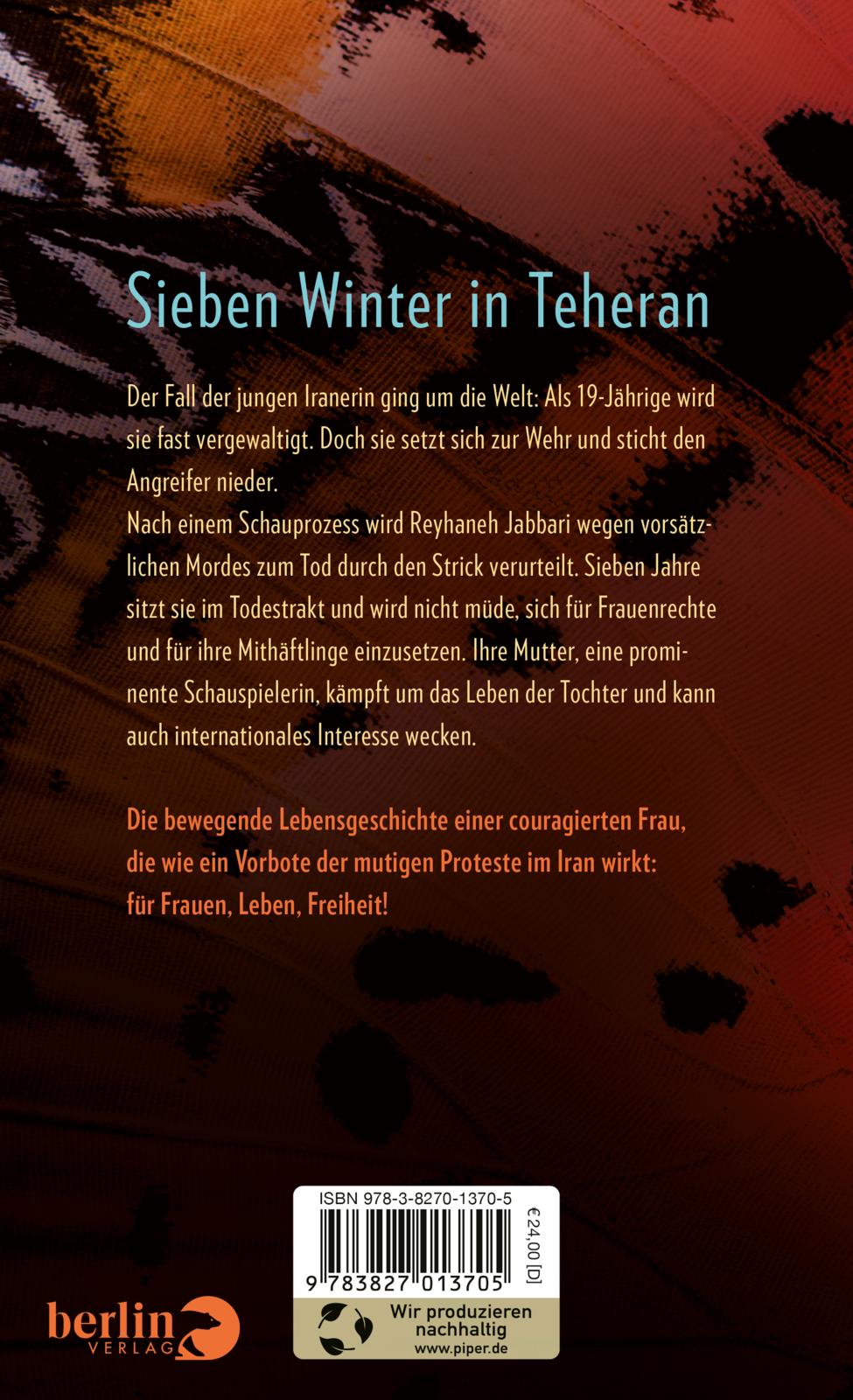 | Schlagworte | Amnesty International • Berlinale • Buch zum Film • Feminismus • Femizit • Folter • Frauen im Iran • Frauen, Leben, Freiheit • Friedensfilmpreis der 73. Berlinale • Für Frauen, Leben, Freiheit • Gefängnis • Gefängnisinsasse • Hinrichtung • Isolationshaft • Kampf für Frauenrechte • Politische Gefangene • Protest • Proteste im Iran • Reyhaneh Jabbari • Schauprozess • Sieben Winter Buch zum Film • Sieben Winter in Teheran • Sieben Winter in Teheran Buch • Teheran • Tehran • Todesstrafe • Verbrechen an Frauen • Vergewaltigung • Widerstand • Zivilcourage |