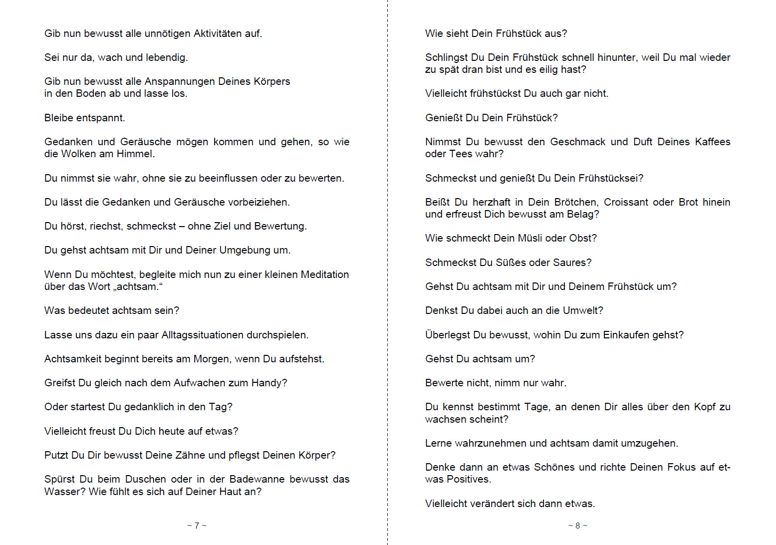 Du liest die Texte für Dich selbst und machst an den Stellen immer kleine Pausen, damit Deine Fantasie auch genug Zeit hat, sich alles vorzustellen.