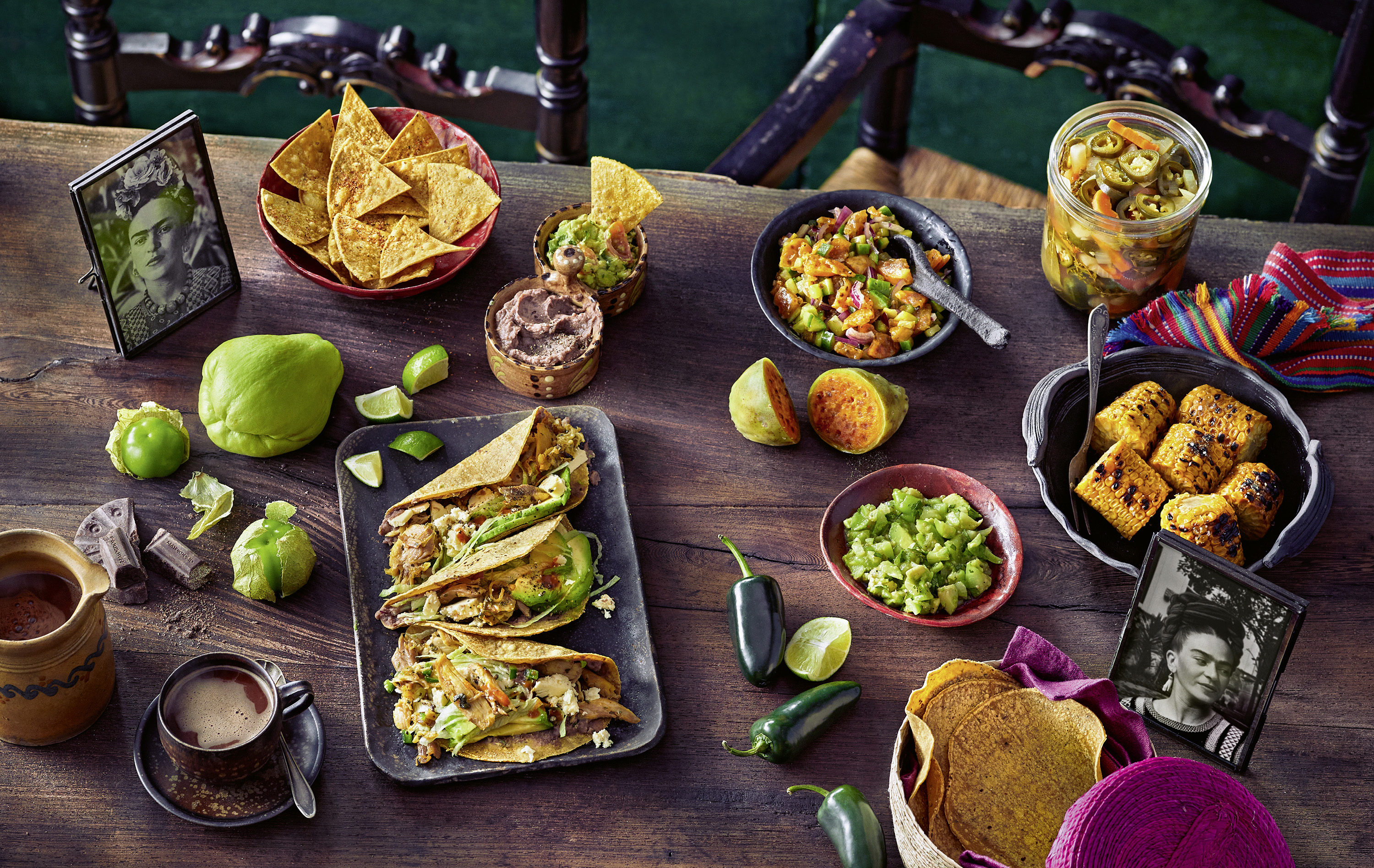 Etwas weniger bekannt als ihre farbgewaltigen Bilder und Selbstportraits war Fridas Liebe zur mexikanischen Küche, vor allem der aus Oaxaca, dem Geburtsort ihrer Mutter. Sie liebte Gerichte wie Mole, Tamales und Enchiladas sowie lange Ausflüge auf dem Markt von Coyoacán. Die Zubereitung selbst überließ sie dabei ihrer Köchin, Fridas Ding war das Arrangieren und kombinierender der Gerichte. Ihr berühmtes "Mole Poblano"-Rezept, eine Schokoladen-Chili-Sauce, die aus der Mexikanischen Küche nicht wegzudenken ist, hängt heute im Frida-Kahlo-Museum in Mexico City.
