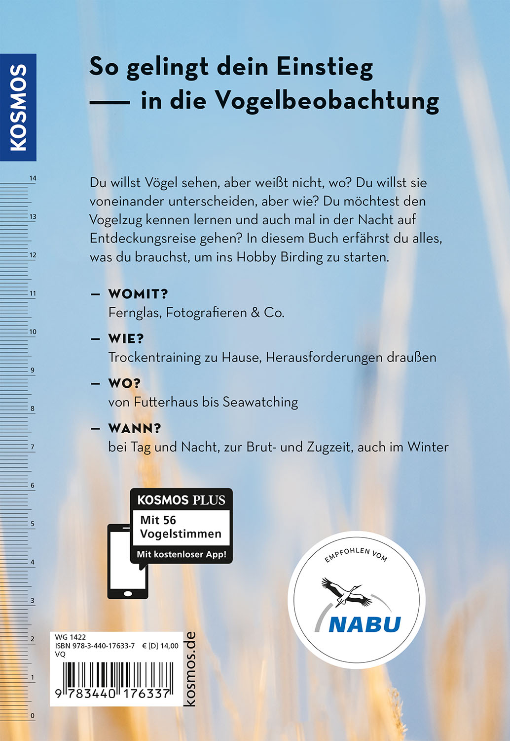 Fernglas justiert, Spektiv aufgebaut, aber kein Vogel lässt sich blicken? Leander Khil kennt die typischen Fragen von Jung-Birdern aus vielen Exkursionen. Worauf achte ich am Futterhaus? Wie beobachte ich Vögel am Wasser oder am Abend? Sein reich bebildertes Praxisbuch macht den Einstieg in die Vogelbeobachtung leicht. Alle Fakten sowie Tipps zum Erkennen und Bestimmen werden ausführlich erklärt und in Form von Freiland-Übungen erlernt, wobei jeweils auch die Vogelarten vorgestellt werden. So bekommen Birding-Einsteiger auch "knifflige" Arten vor die Linse.