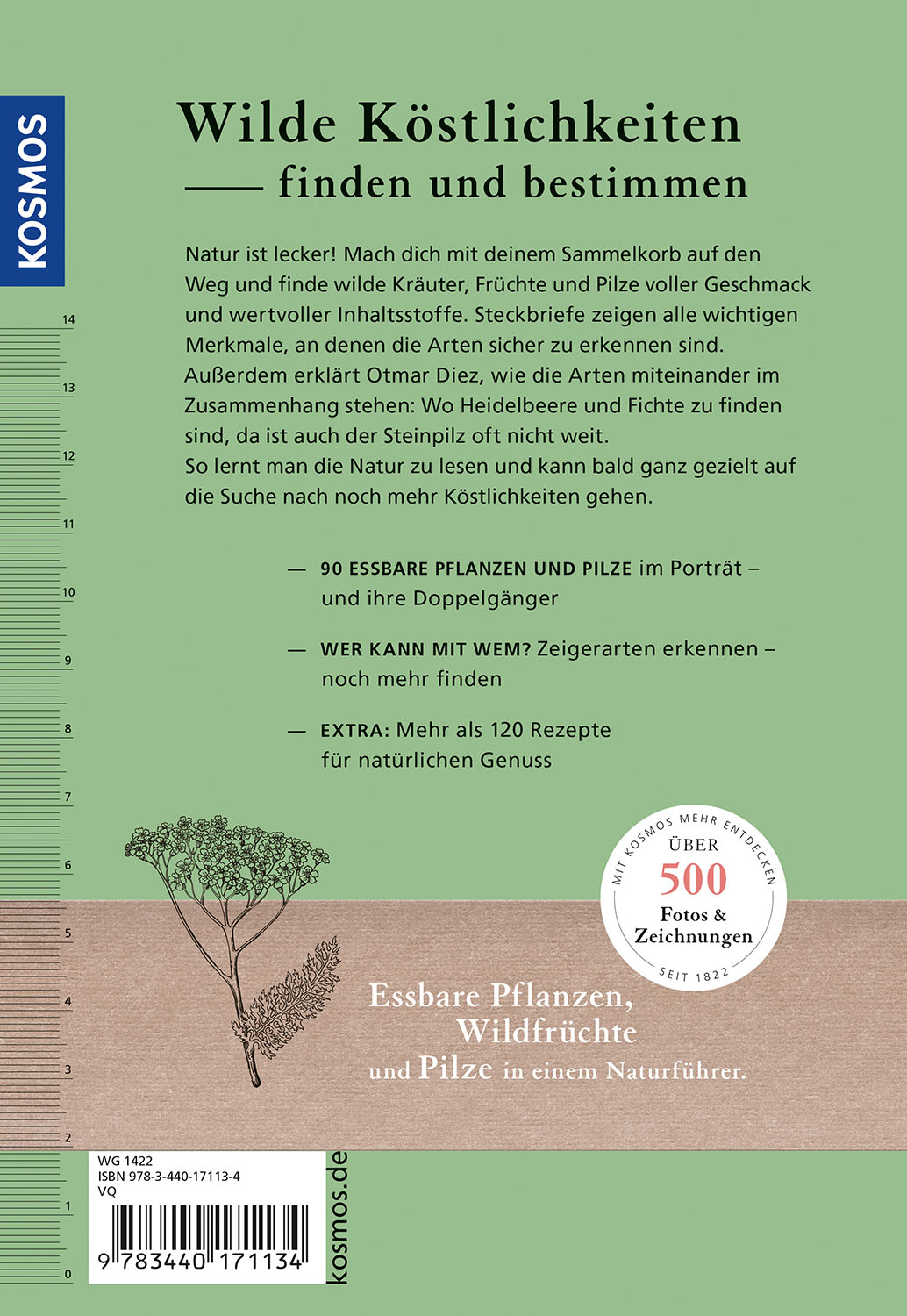 Dieser Naturführer zeigt die ganze Vielfalt essbarer Pflanzen und Pilze aus unserer heimischen Natur. 30 Wildkräuter, Bäume, Sträucher, Beeren und Pilze werden vorgestellt, jeweils mit Fotos und Zeichnungen, Bestimmungsmerkmalen, Verwechslungspartnern sowie Rezepten und Tipps zur Verarbeitung und Lagerung. Darüber hinaus vermittelt das Buch ein tieferes Verständnis für ökologische Zusammenhänge, z.B. welche Beeren, Bäume und Pilze denselben Lebensraum teilen. Das erleichtert das gezielte Sammeln und hilft, unsere Wälder als komplexen Lebensraum zu verstehen.