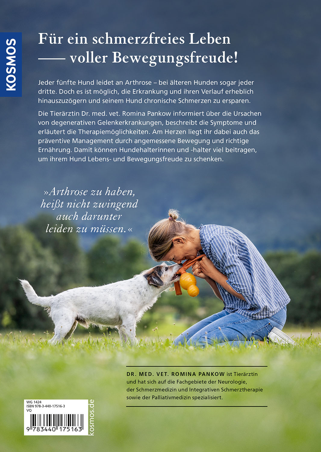 Jeder fünfte Hund leidet an Arthrose - bei älteren Hunden sogar jeder dritte. Doch es ist möglich, die Erkrankung und ihren Verlauf erheblich hinauszuzögern und seinem Hund chronische Schmerzen zu ersparen. Die Tierärztin Dr. med. vet. Romina Pankow informiert über die Ursachen von degenerativen Gelenkerkrankungen, beschreibt die Symptome und erläutert die Therapiemöglichkeiten. Ein Schwerpunkt des Buchs liegt auf dem - auch präventiven - Management durch Bewegung und richtige Ernährung. Damit können Hundehalter viel beitragen, um ihrem Hund Lebens- und Bewegungsfreude zu schenken.
