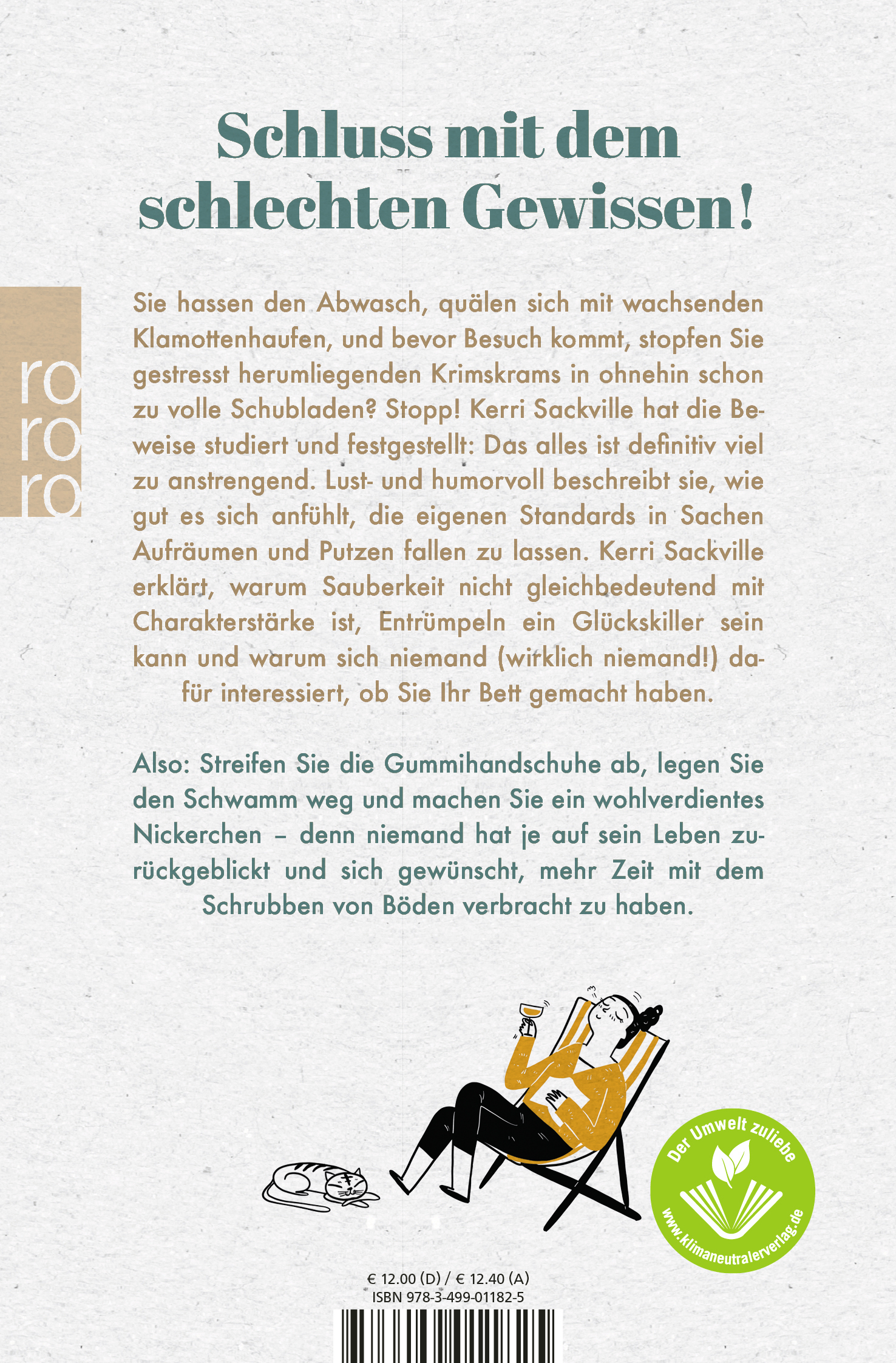 Endlich! Die augenzwinkernde Antwort auf alle Kondos, FoldingLadies und Marla Cillies dieser Welt: In einer Zeit, in der Entrümpelungsgurus, Reinigungsblogger und Ordnungsinfluencer Millionen von Menschen in ihren Bann ziehen, hat Kerri Sackville die Beweise studiert und festgestellt: Das ist definitiv alles viel zu anstrengend und zeitintensiv. Sie macht also das für die Aufräumfetischist:in, was Mark Manson für die Achtsamkeitsleser:in getan hat: Sie zeigt, dass und wie es auch ohne Perfektionismus gehen kann. Kerri erklärt, warum Sauberkeit nicht gleichbedeutend mit Charakterstärke ist, Entrümpeln ein Glückskiller sein kann, und warum sich niemand (wirklich niemand!) dafür interessiert, ob Sie Ihr Bett gemacht haben.
