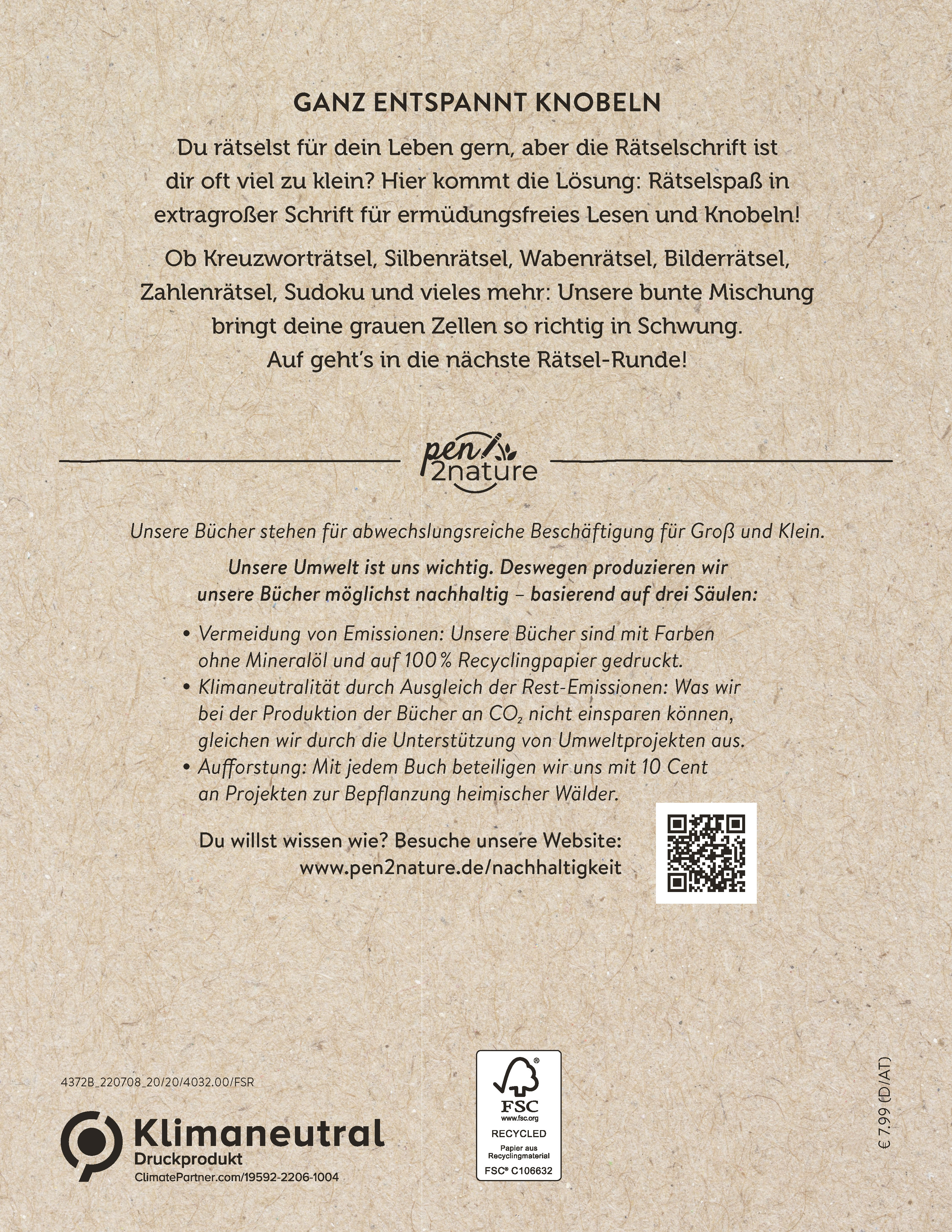 | Schlagworte | aus Recyclingpapier • Bilderrätsel • _Buch • Buch • Denksport • Gedächtnistraining • Gehirnjogging • Großdruck • Großdruckrätsel • große Schrift • Großschrift • klimaneutral • Klimaneutrales Buch • klimapositiv • Klimawandel • Kreuzworträtsel • nachhaltiges Geschenk Buch • Nachhaltigkeit • ökologische Bücher • p2n • pen 2 nature • pen2nature • pen to nature • Pflanzenfarben • Rätsel • Rätselbuch • Rätselmix • Rätseln • Rätselspaß • Recycling • Recyclingpapier • Rentner • Schwedenrätsel • Senioren • Seniorenrätsel • Silbenrätsel • Sudoku • umweltbewusst • umweltfreundliche Bücher • Umweltschutz • Umweltverlag • Wabenrätsel • wörtersuchen • Zahlenrätsel • Zero Waste |