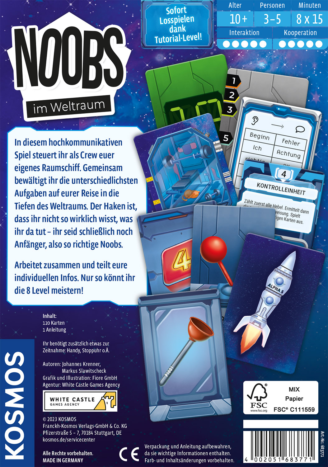 Wie wird das Raumschiff gesteuert? Auf 2-5 Spielerinnen und Spieler ab zehn Jahren wartet lustiger Spielspaß im Weltraum. Mehrere Level mit neuen Herausforderungen liegen vor ihnen. Sie lösen Aufgabe um Aufgabe und sprechen sich untereinander ab. Kooperativ und abwechslungsreich: das Kartenspiel für einen spannenden Spieleabend!