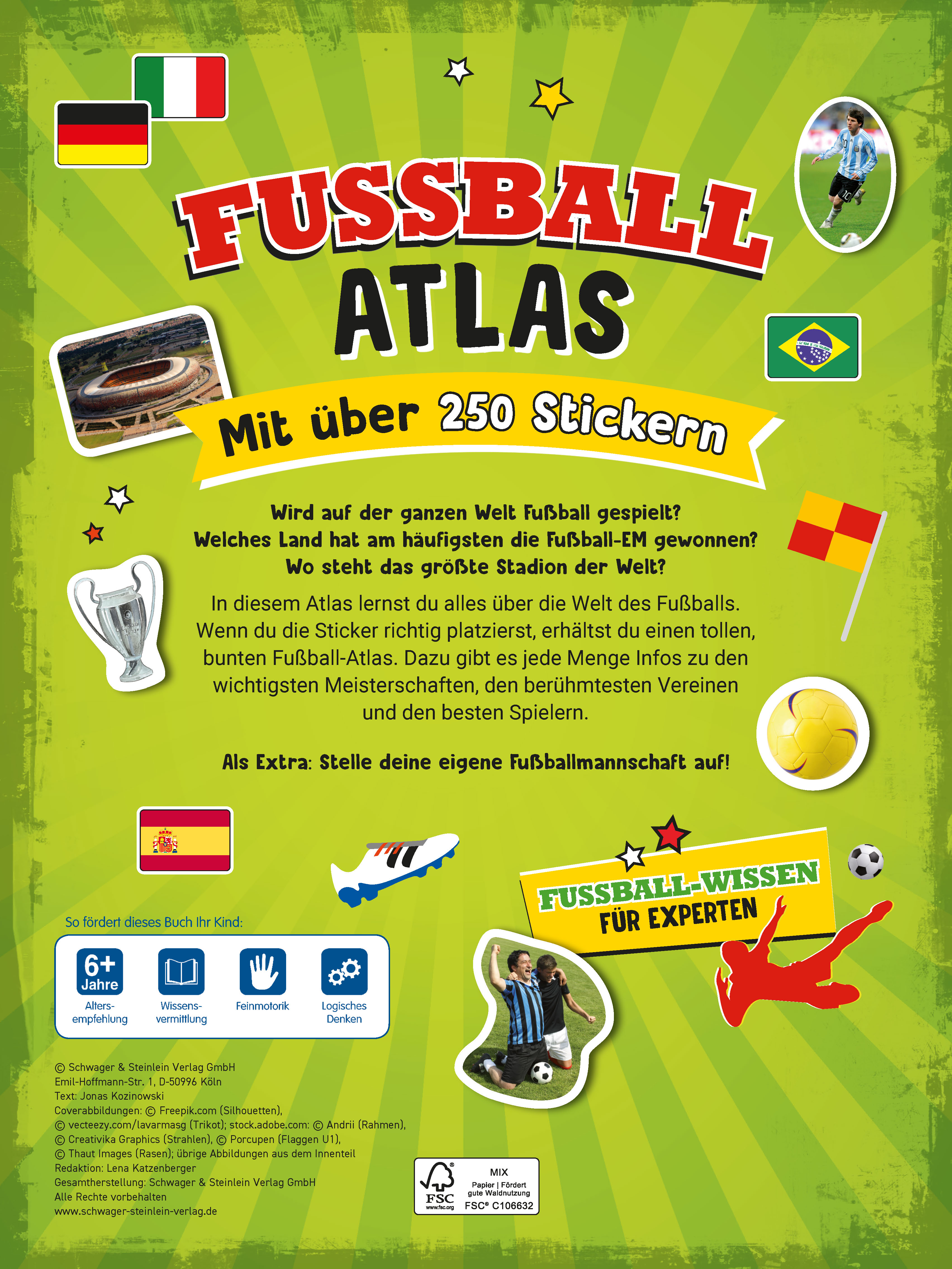 Klebe deinen eigenen bunten Fußball-Atlas! Mit spannendem Sachwissen, über 250 Stickern und Quizfragen für Fußball-Fans ab 6 Jahren