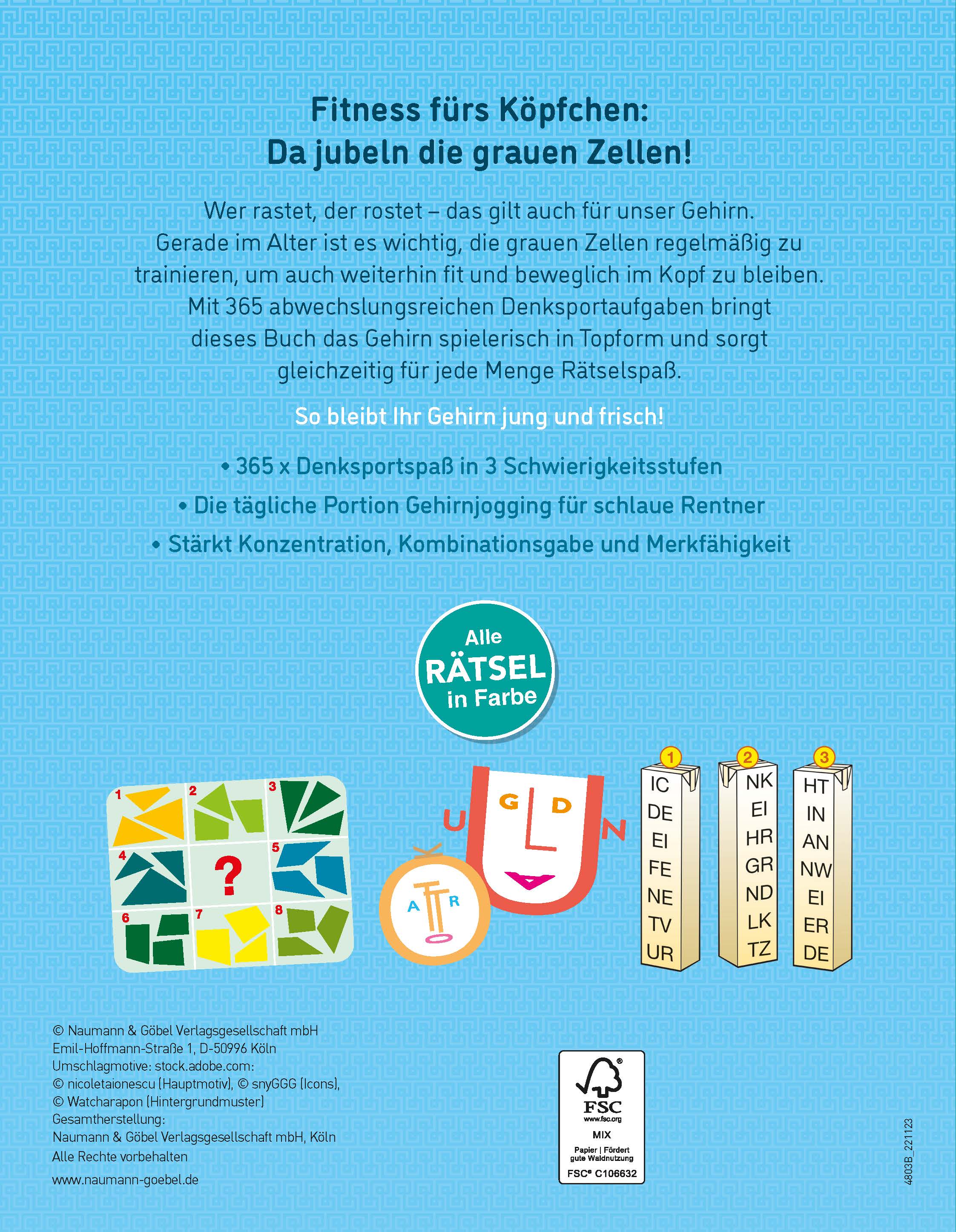 | Schlagworte | Buchstabenrätsel • Denkspiel • Denksport • Erwachsene • Gedächtnistraining • Gehirnjogging • Geschenk • Geschenkbuch • Geschenkidee • Großeltern • Großmutter • Großvater • Kopftraining • Kreuzworträtsel • Logikrätsel • Naumann & Göbel Verlag • NGV • Oma • Opa • _Rätsel • Rätsel • Rätselblock • Rätselbuch • Rentner • Senioren • Seniorenrätsel • Sudoku • unter 10 Euro |