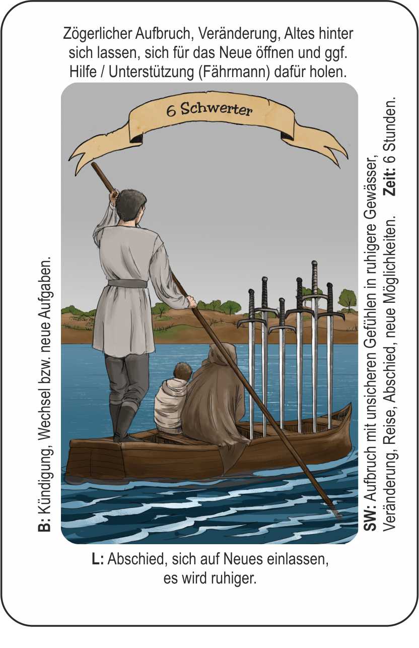 - SW steht für die Schlüsselwörter / Hautdeutung der Tarotkarte