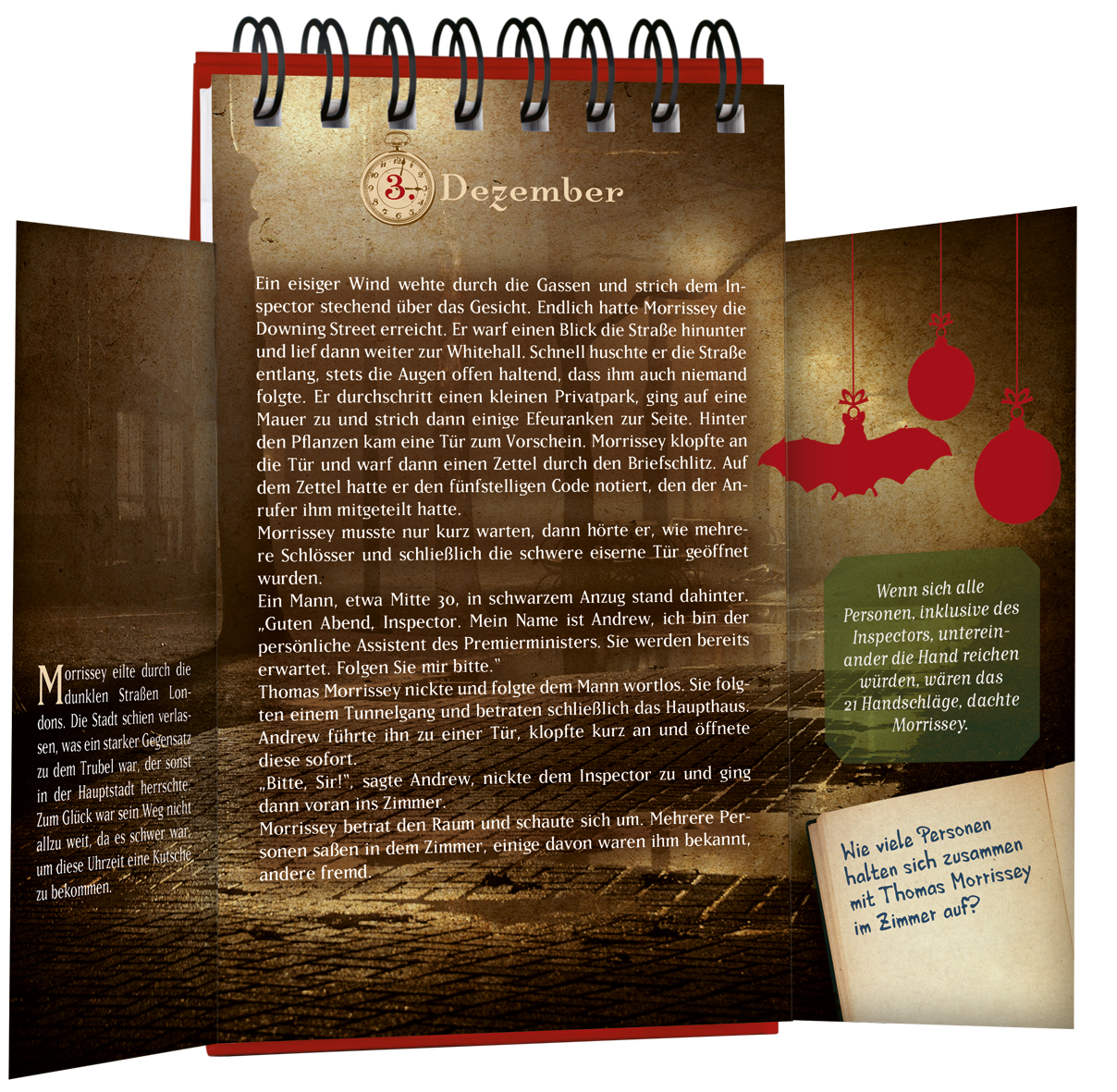 - Ein Weihnachtskalender ganz ohne Schokolade für erwachsene Krimi- und Rätselfans.