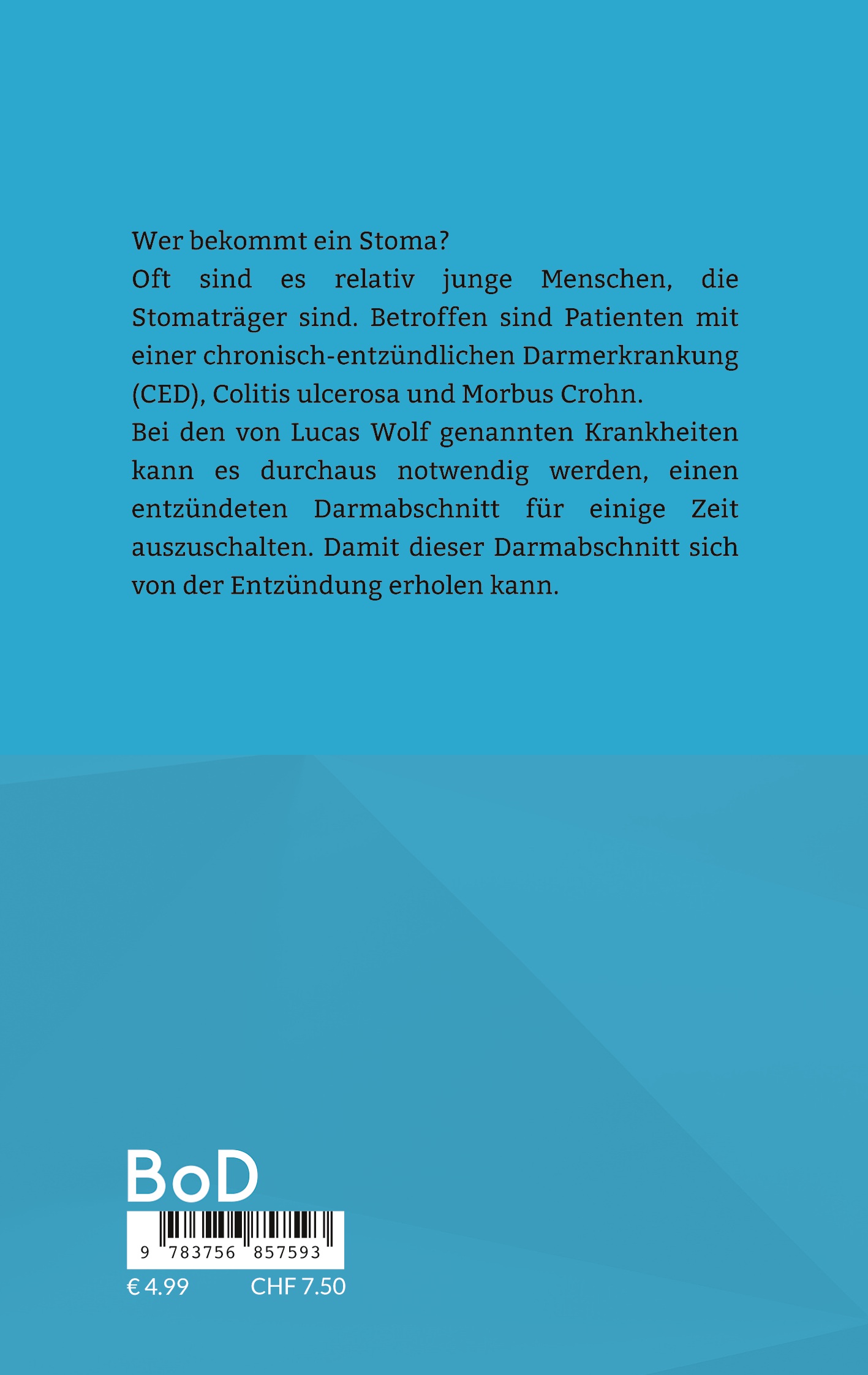 Wer bekommt ein Stoma?Oft sind es relativ junge Menschen, die Stomaträger sind. Patienten mit einer chronisch-entzündlichen Darmerkrankung (CED), Colitis ulcersa und Morbus Crohn sind besonders gefährdet.Bei den von Lucas Wolf genannten Krankheiten kann es durchaus notwendig werden, einen entzündeten Darmabschnitt für einige Zeit auszuschalten. Damit dieser Darmabschnitt sich von der Entzündung erholen kann.