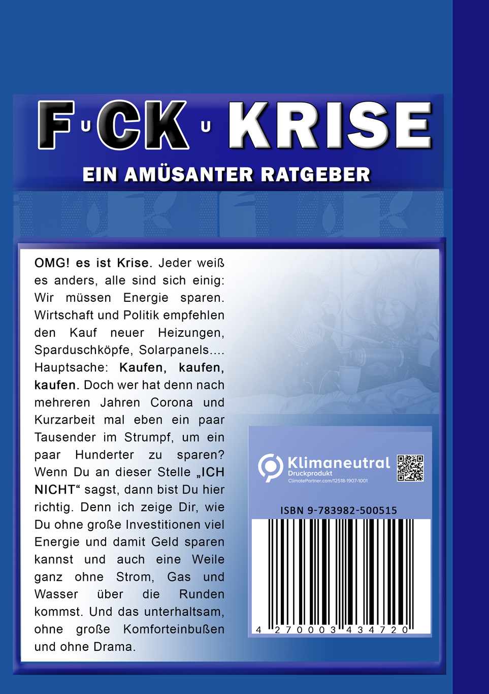 OMG! es ist Krise. Jeder weiß es anders, alle sind sich einig: Wir müssen Energie sparen. Wirtschaft und Politik empfehlen den Kauf neuer Heizungen, Sparduschköpfe, Solarpanels, etc. Hauptsache: Kaufen, kaufen, kaufen. Doch wer hat denn nach fast 3 Jahren Corona und Kurzarbeit mal eben ein paar Tausender im Strumpf, um ein paar Hunderter zu sparen? Wenn Du an dieser Stelle „ICH NICHT“ sagst, dann bist Du hier richtig. Der Berliner Journalist und Autor André Detroit zeigt, wie man ohne große Investitionen viel Energie und damit Geld sparen kann und auch eine Weile ganz ohne Strom, Gas und Wasser über die Runden kommt. Und das unterhaltsam, ohne große Komforteinbußen und ohne Drama.
