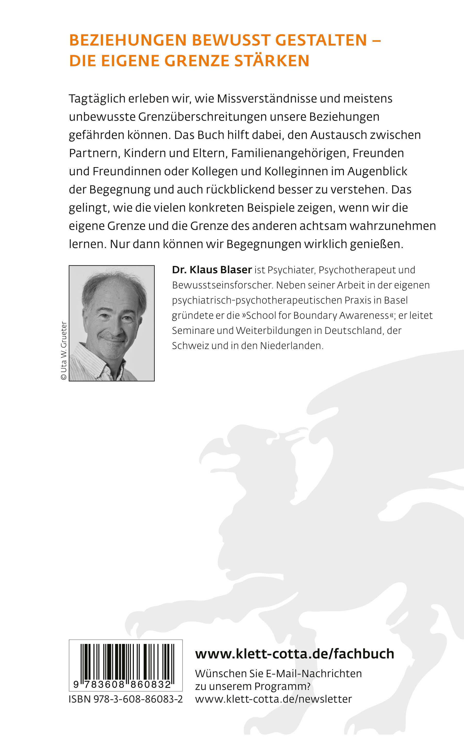 Klaus Blaser, Dr., ist Psychiater, Psychotherapeut und Bewusstseinsforscher. Neben seiner Arbeit in der eigenen psychiatrisch-psychotherapeutischen Praxis in Basel gründete er die „School for Boundary Awareness“; er leitet Seminare und Weiterbildungen in Deutschland, der Schweiz und in den Niederlanden.