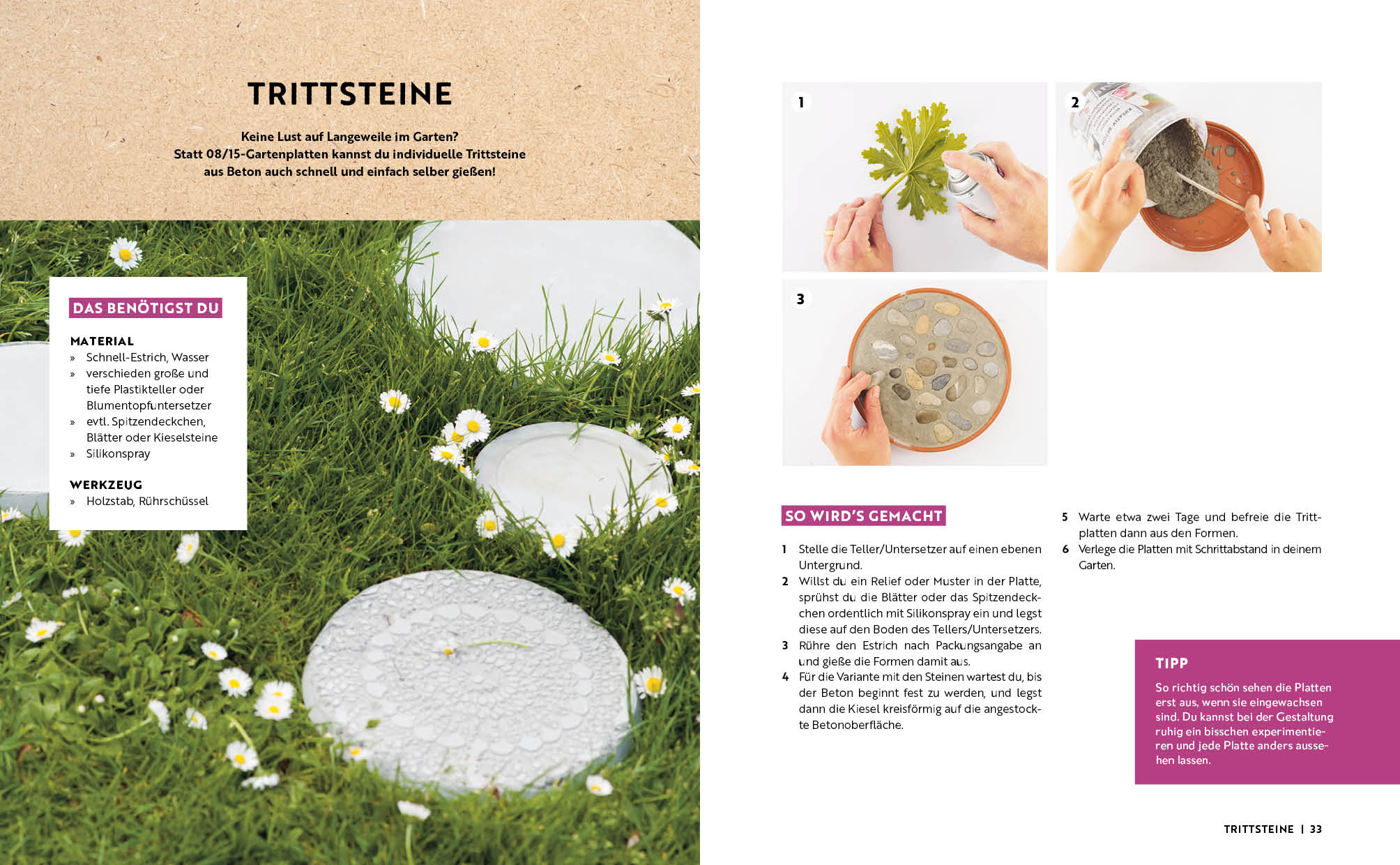 Alle Anleitungen sind Schritt für Schritt erklärt und einfach umzusetzen. So lässt sich aus Holz, Stoff, Beton, Naturmaterialien und Co. ruck zuck etwas ganz Besonderes für den Garten zaubern. Sie sind noch auf der Suche nach einem Geschenk für eine*n Gartenbesitzer*in? Hier ist sicher etwas passendes zum Selbermachen dabei!