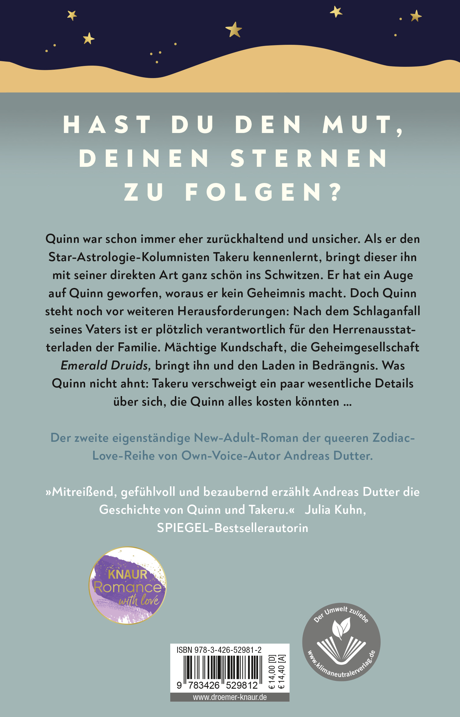 | Schlagworte | Andreas Dutter • Astrologie • Astrologie Dating • Astrologie Liebesroman • Astrologie Roman • Astrology • astrologysigns • astrologytiktok • astrologytok • BrividoLibro • College Liebe • college liebesromane deutsch • College Romane • Cork • dark academia • Deutsche Own Voice LGBTQIA+ • Diversity • found family • Irland • knaurromance • Knaur Romance • LGBTQ Bücher • lgbtqia+ • LGBTQIAP+ • LGBTQ Romane • Liebesgeschichten Bücher • Liebesromane College • Liebesromane Reihe • liebesroman new adult • New Adult • new adult bücher • new adult liebesroman deutsch • new adult romane • New Romance Buch • Pansexualität • Pansexuelle Hauptfigur • Queer • queere Romane • queer romance • Romane LGBT • Romane Liebe • Romantische Liebesromane • romantische romane • Starlight in Our Dreams • Sternzeichen • Sternzeichen Dating • Sternzeichen Liebesroman • Sternzeichen Roman • TikTok-Trend • University College Cork • young adult romance books • Zodiac Love 2 • Zodiac Love Band 2 |