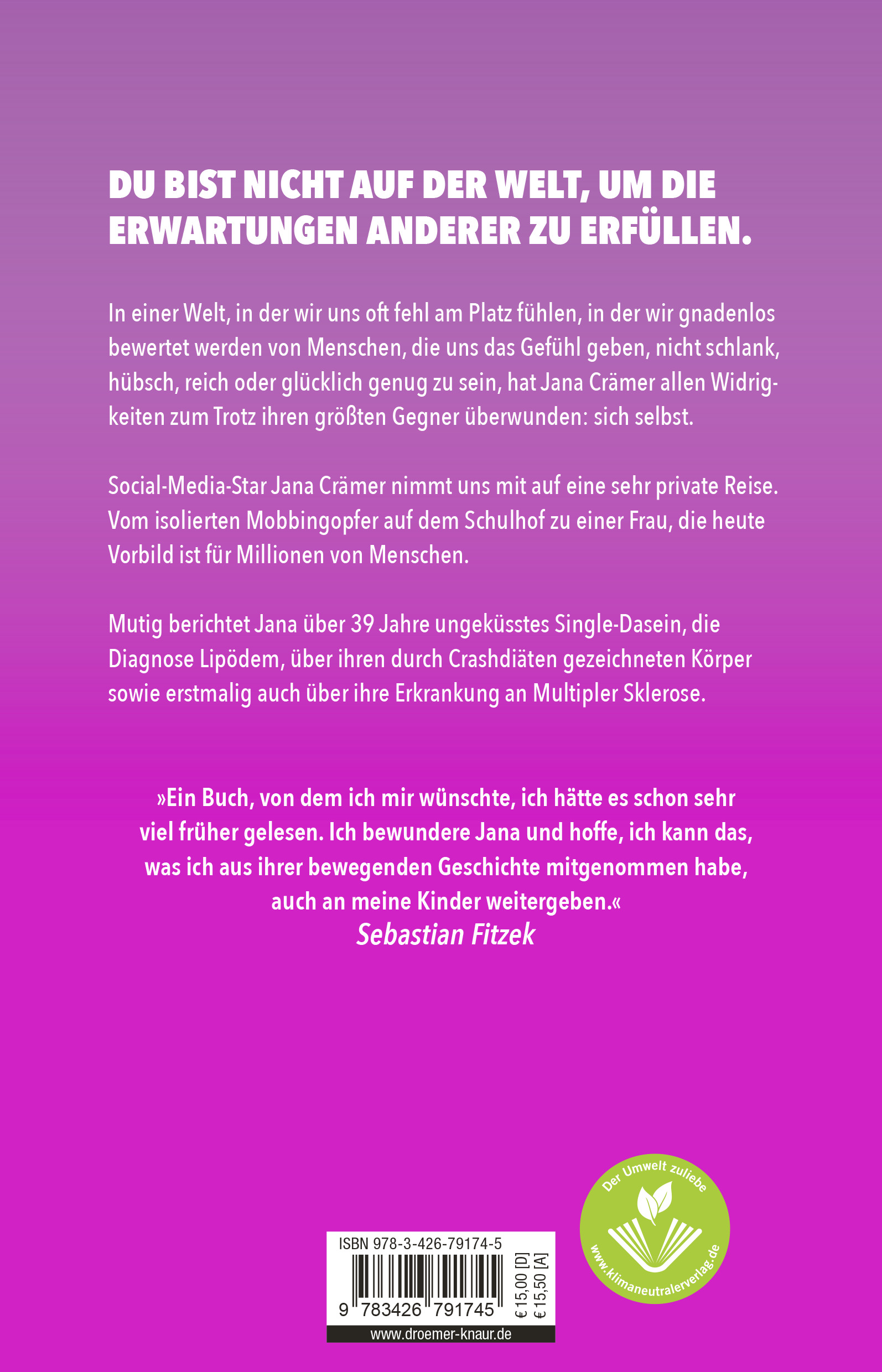 In einer Welt, in der wir uns oft fehl am Platz fühlen, in der wir gnadenlos bewertet werden von Menschen, die uns das Gefühl geben, nicht schlank, hübsch, reich oder glücklich genug zu sein, hat Jana allen Widrigkeiten zum Trotz ihren größten Gegner überwunden: sich selbst.