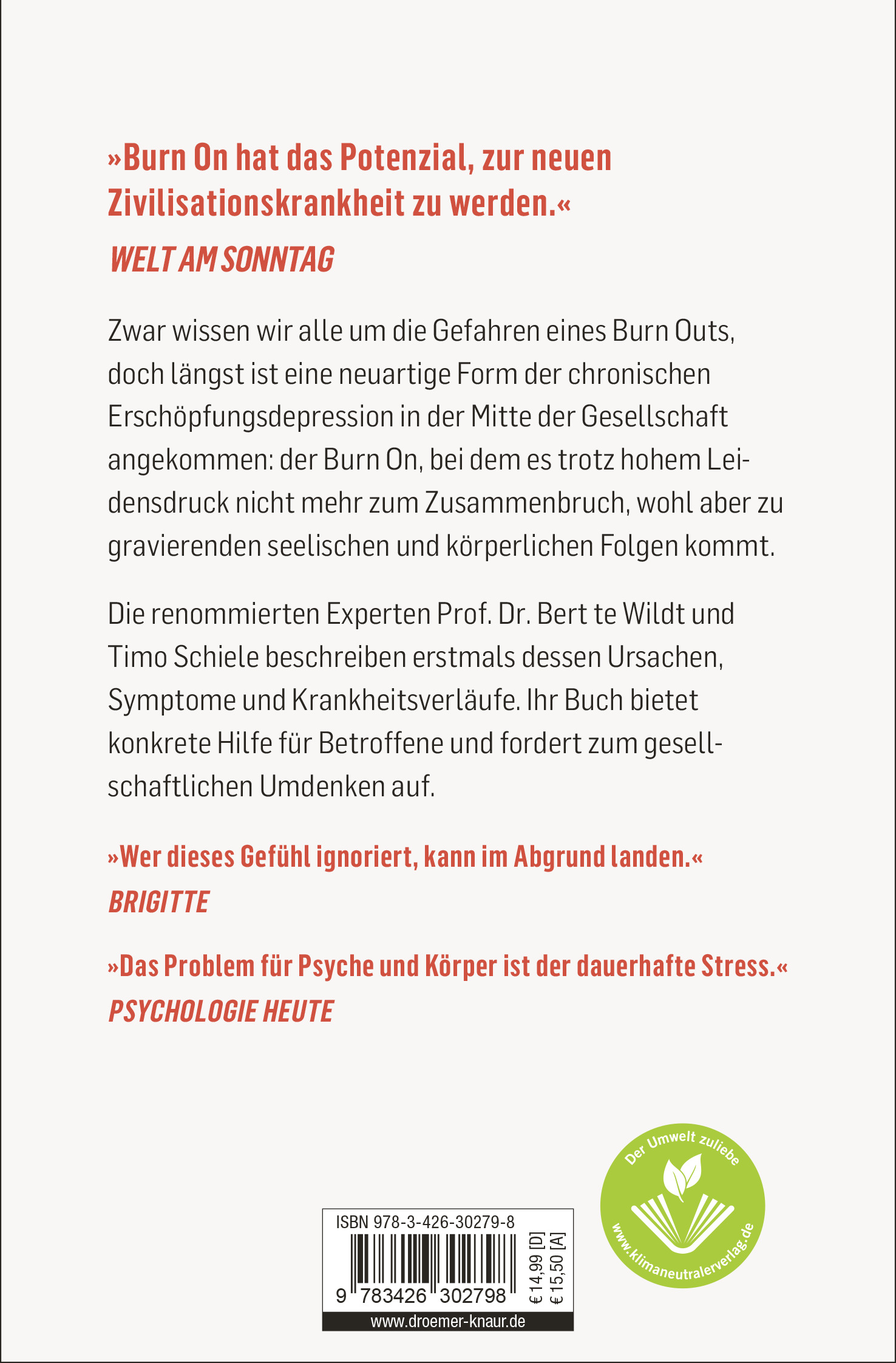 Die renommierten Experten Prof. Dr. Bert te Wildt und Timo Schiele beschreiben in ihrem Psychologie-Ratgeber erstmals das Burn-On-Syndrom, bei dem es trotz hohen Leidensdrucks nicht mehr zum Zusammenbruch, wohl aber zu gravierenden seelischen und körperlichen Folgen kommt.