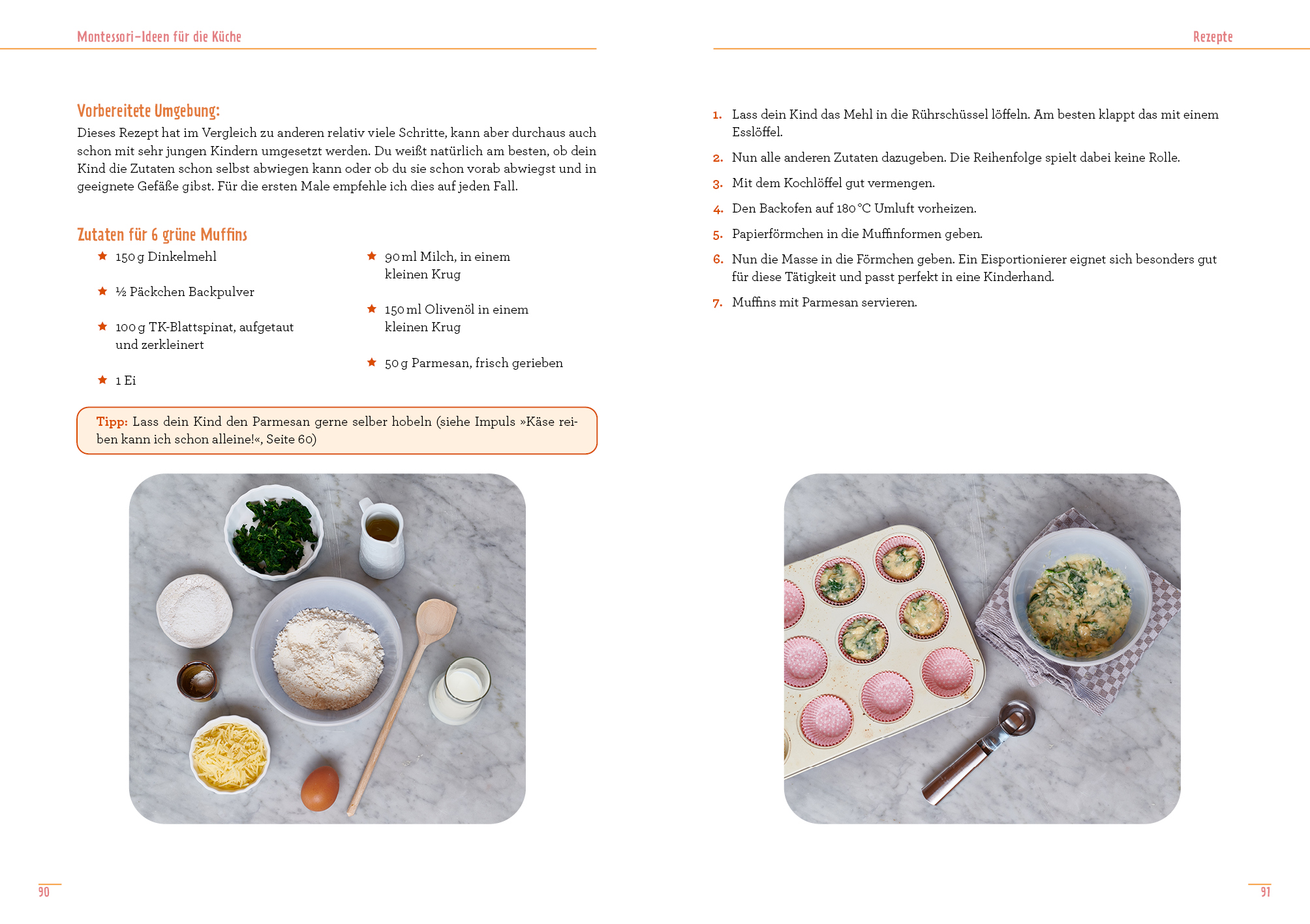 Die Küche ist ein wunderbarer Ort, um die Montessoripädagogik zu Hause in die Erziehung einfließen zu lassen. Es geht darum, Kinder zur Selbstständigkeit zu erziehen und ganz nebenbei ihre Motorik und ihr Selbstbewusstsein zu fördern. Der Ratgeber liefert kurzes und einfaches Grundwissen zum Thema Montessori in der Küche und praktische Tipps und Inspiration, um die Umgebung perfekt vorzubereiten und die Arbeitswerkzeuge auszuwählen. Die Autorin erklärt, wie man die Küche so gestaltet, dass Kinder Lust bekommen, selbst tätig zu werden. Wichtig sind eigene Arbeitsbereiche für die Kinder, zum Beispiel eine eigene Schublade, der klassische Learning-Tower oder ein eigener Arbeitstisch mit unterschiedlichen Utensilien. 30 Impulse, Ideen und Rezepte, nach Jahreszeiten und Schwierigkeitsgraden aufgeteilt, zeigen im Anschluss, was die Kleinen konkret schon selbst in der Küche machen können: eigene kleine Snacks zubereiten, Orangensaft auspressen, Gemüse und Obst schneiden und vieles mehr.