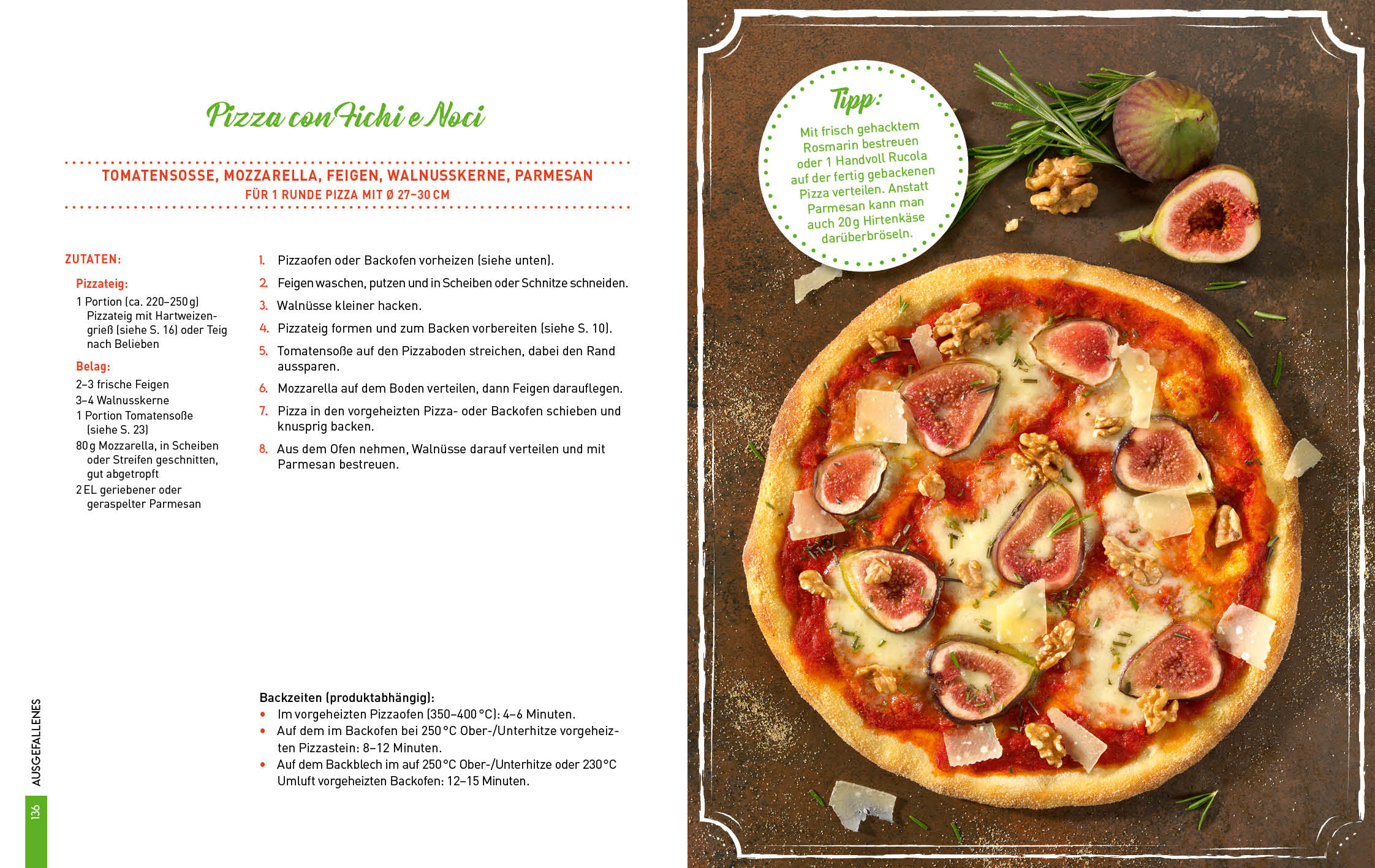 Der italienische Klassiker ist eines der populärsten Gerichte überhaupt und das zu Recht. Knuspriger Pizzaboden, würzige Tomatensoße, zart schmelzender Käse und eine unendliche Auswahl an Belag und Toppings. Hier kommt garantiert jeder auf seine Kosten. Dieses Kochbuch erklärt Schritt für Schritt, wie die perfekte Pizza gelingt. Von der besten Mehlsorte über verschiedene Teigarten mit Hefe, Hartweizengrieß oder für Pinsa bis hin zu Tipps und Tricks für das ideale Backergebnis aus dem heimischen Ofen. Natürlich dürfen Rezepte für die traditionellen Favoriten wie Margherita, Calzone, Salami, Tonno oder Napoli nicht fehlen. Aber auch ausgefallenere Sorten mit Birne, Walnuss und Gorgonzola oder mit Lachs, Salsiccia oder Parmaschinken sowie mit Mascarpone und Fenchel kommen nicht zu kurz. Versuch dich doch auch mal an einer veganen Variante oder an einer Pizza mit hauchdünnen Kartoffelscheiben, Ricotta und Trüffelöl. Vielleicht entdeckst du hier deine neue Lieblingssorte. Viel Spaß beim Kneten, Belegen, Backen und Genießen!