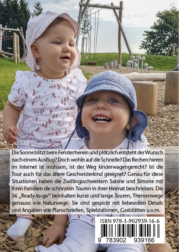 Die Sonne blitzt beim Fenster herein und plötzlich entsteht der Wunsch nach einem Ausflug? Doch wohin auf die Schnelle? Das Recherchieren im Internet ist mühsam. Ist der Weg kinderwagengerecht? Ist die Tour auch für das ältere Geschwisterkind geeignet? Genau für diese Situationen haben die Zwillingsschwestern Sabine und Simone mit ihren Familien die schönsten Touren in ihrer Heimat beschrieben. Die 56 "Ready-to-go" beinhalten kurze und lange Touren, Themenwege genauso wie Naturwege. Sie sind gespickt mit liebevollen Details und Angaben wie Planschstellen, Spielstationen, Gaststätten u. v. m.