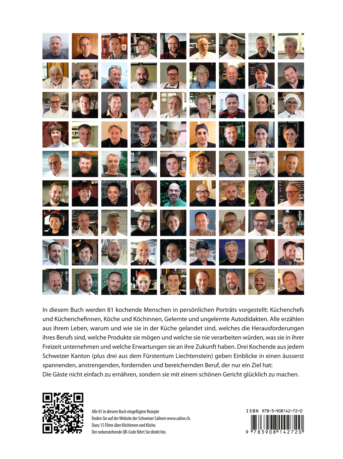 In diesem Buch werden 81 kochende Menschen in persönlichen Porträts vorgestellt: Küchenchefs und Küchenchefinnen, Köche und Köchinnen, Gelernte und ungelernte Autodidakten. Alle erzählen aus ihrem Leben, warum und wie sie in der Küche gelandet sind, welches die Herausforderungen ihres Berufs sind, welche Produkte sie mögen und welche sie nie verarbeiten würden, was sie in ihrer Freizeit unternehmen und welche Erwartungen sie an ihre Zukunft haben. Drei Kochende aus jedem Schweizer Kanton (plus drei aus dem Fürstentum Liechtenstein) geben Einblicke in einen äusserst spannenden, anstrengenden, fordernden und bereichernden Beruf, der nur ein Ziel hat: